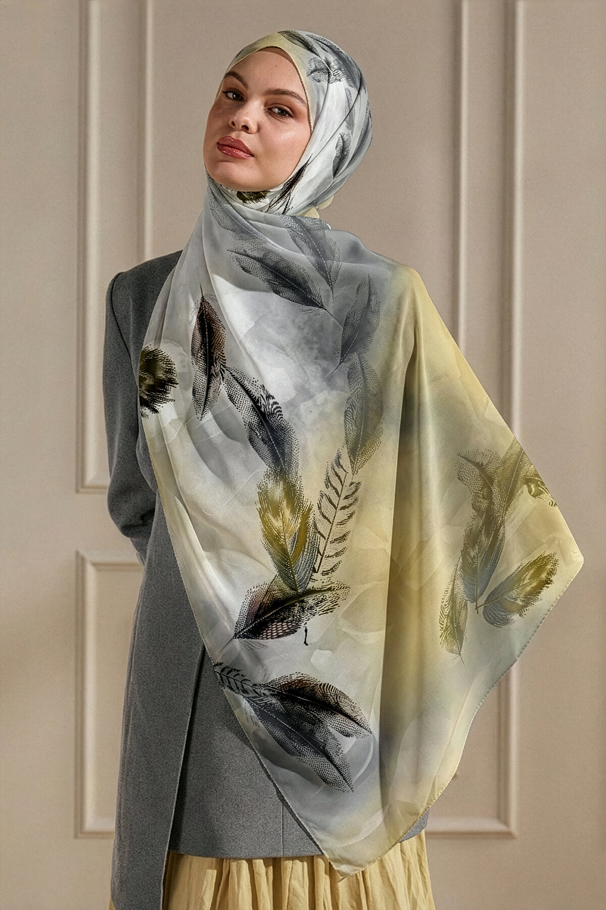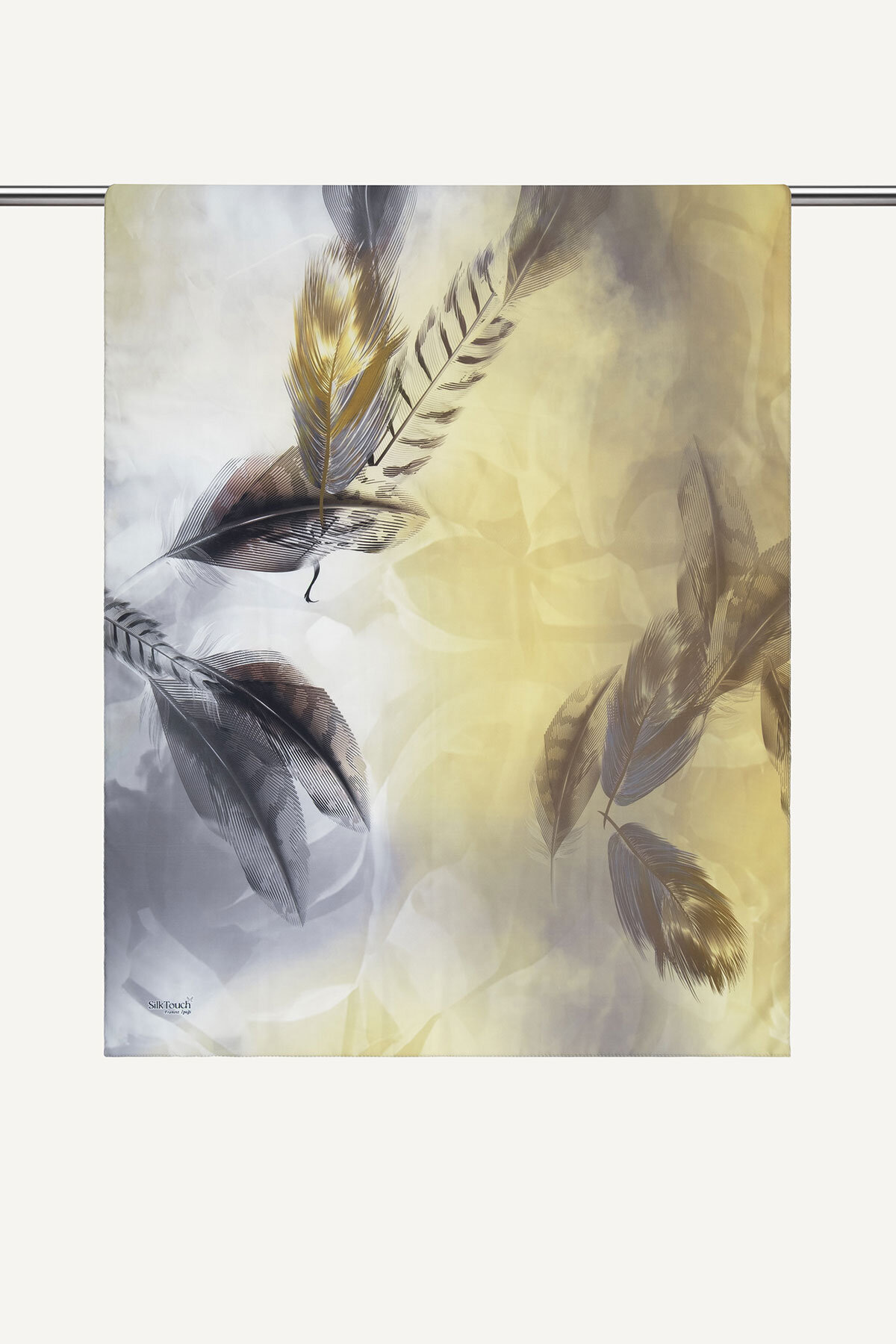 Altın Sarısı'nın parlaklığı, Kehribar Tüyü deseninin narin motifleriyle Fransız İpeği'nin üzerinde ihtişamlı bir etki yaratır. İpeğin lüks dokusuyla özel günlerinizde göz kamaştırın.