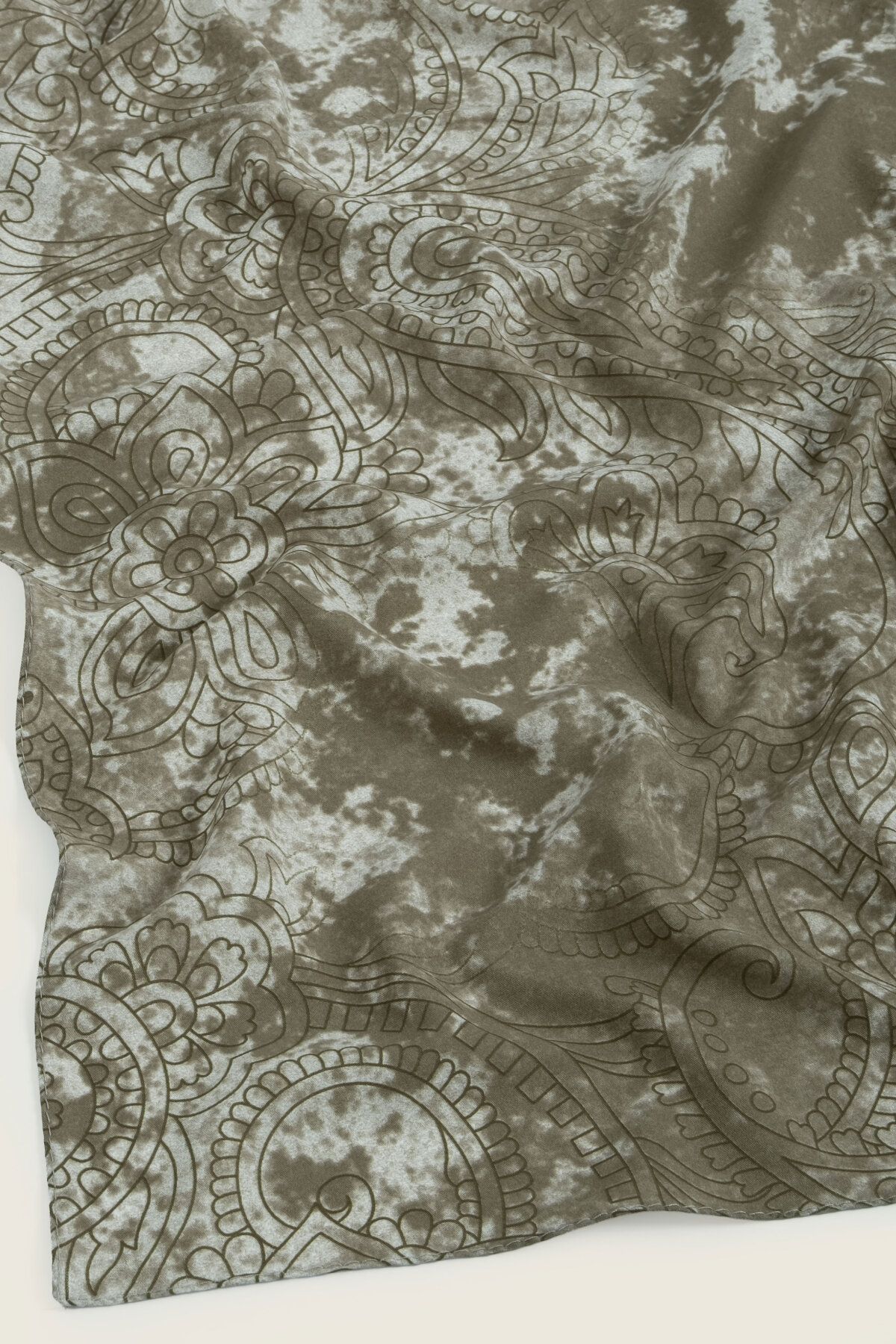 Asker Yeşili'nin güçlü ve doğal tonu, Etnik Dantel deseninin kültürel zarafetiyle modern bir şekilde buluşuyor. Rami şalın hafif ve dökümlü yapısı, casual şıklığınızın vazgeçilmezi olacaktır.