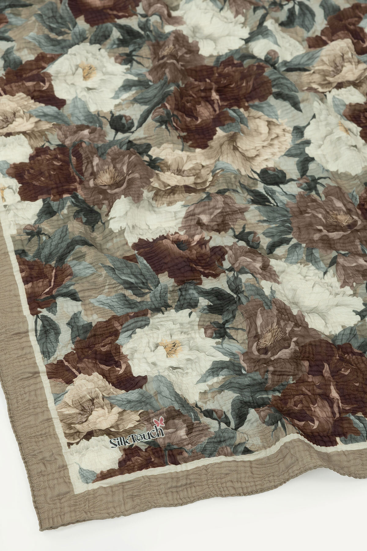 Doğadan ilham alan Gece Çiçeği Desenli Müslin Eşarp, yumuşak dokusu ve romantik çiçek desenleriyle günlük kombinlerden özel davet stiline kadar her anınıza zarafet katar. Nefes alabilen müslin kumaşı sayesinde gün boyu ferah ve konforlu bir kullanım sunar. Hafif yapısı, kolay şekil alması ve kayma yapmayan dokusu ile pratik bir kullanım avantajı sağlar. Dört mevsim rahatlıkla tercih edilebilen bu eşarp, özellikle bahar ve yaz aylarında doğal şıklığı ön planda tutanların favorisi olur.