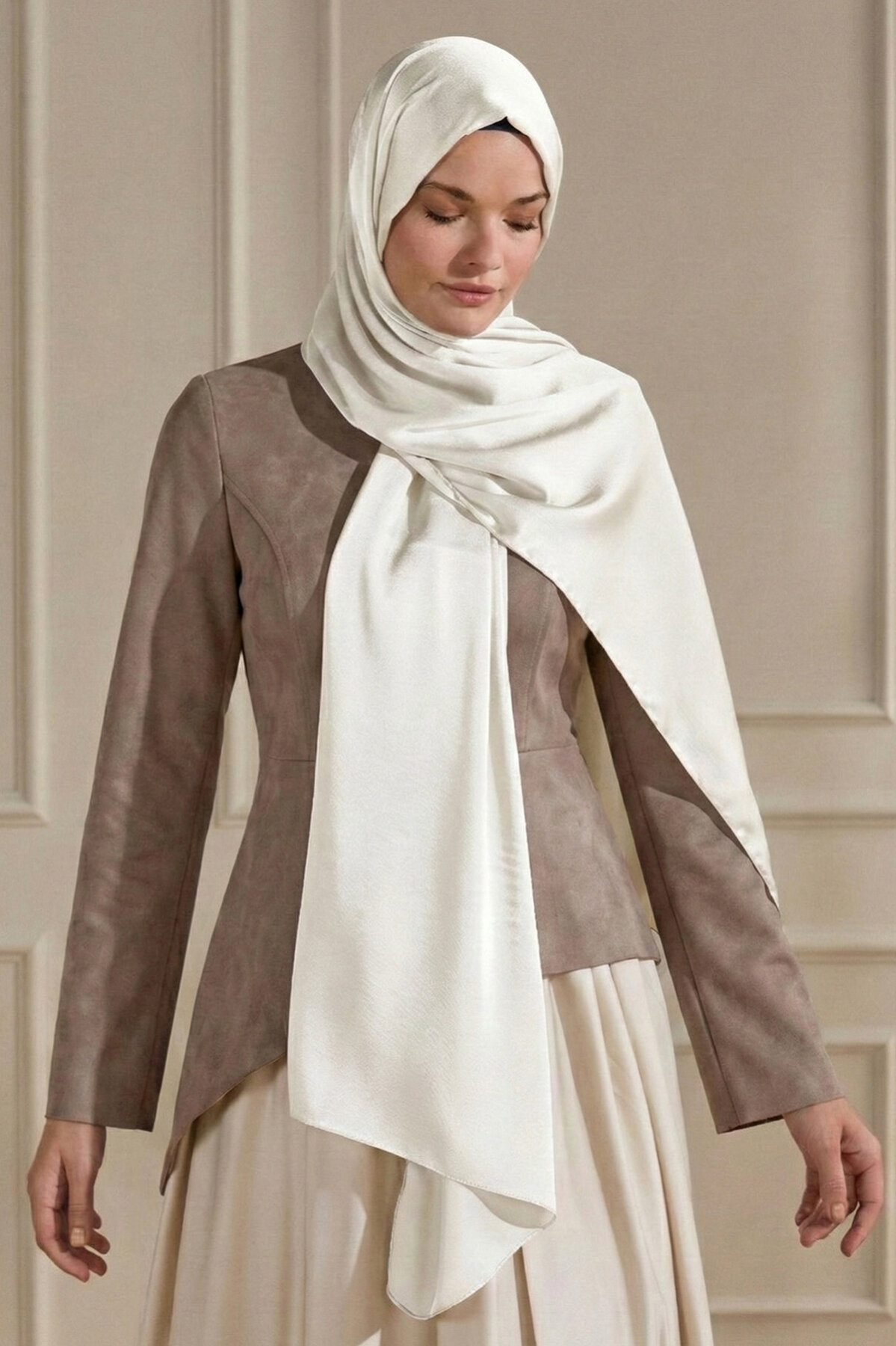 Bejin doğal sadeliği, İnci Şal'ın yumuşak dokusuyla buluşarak ferah ve zarif bir görünüm sunar. Her zaman temiz ve şık bir etki bırakır.