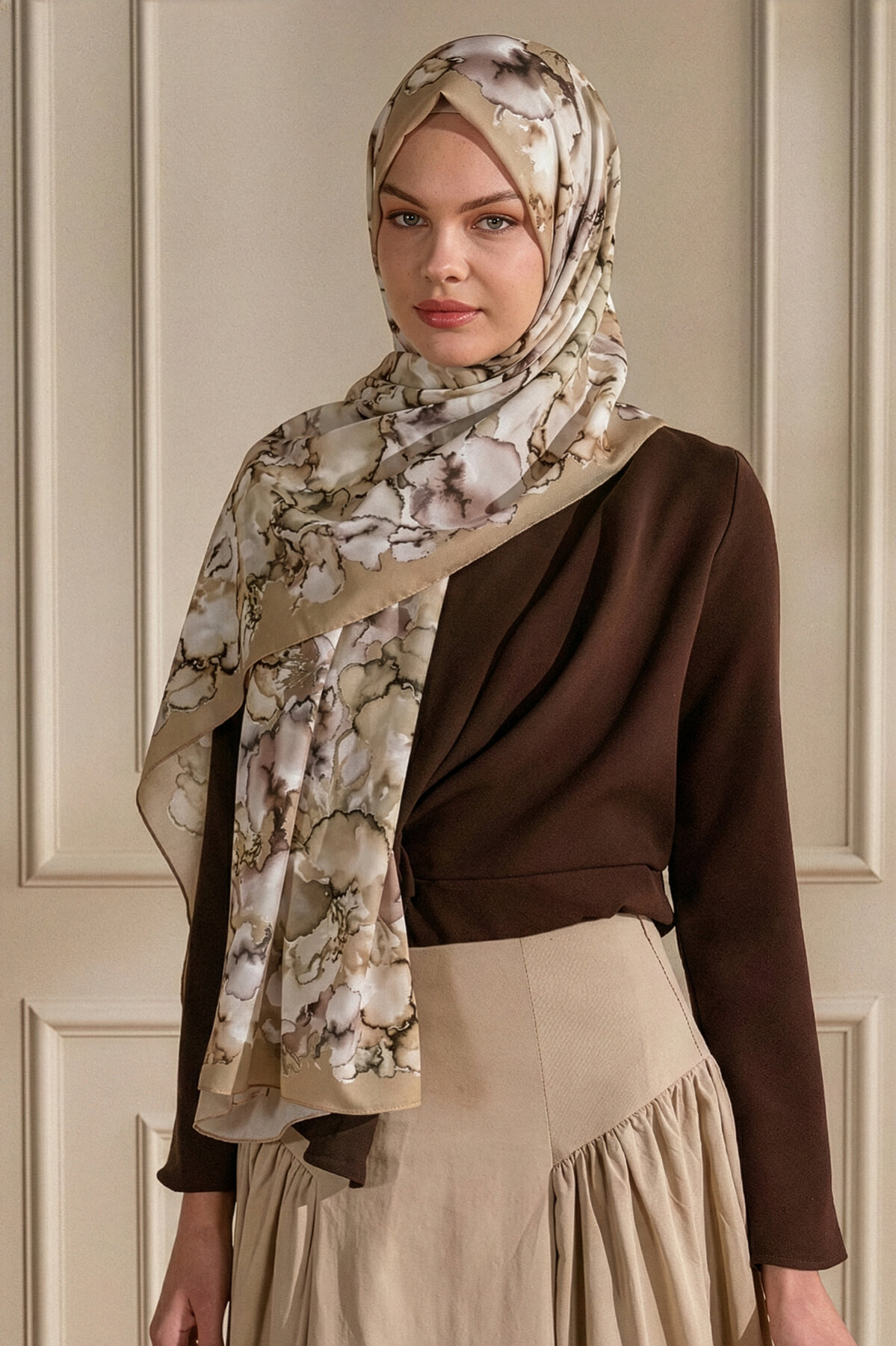 Bejin doğal sadeliği, Mermer Bulutu deseninin sanatsal soyutlamasıyla Fransız İpeği'nin üzerinde minimalist bir lüks sunar. Zarif ve zamansız bir görünüm için mükemmel bir tercihtir.