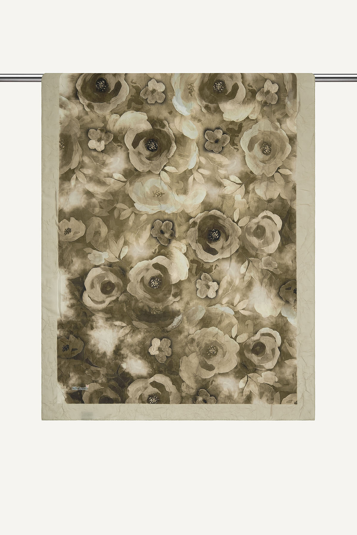Bejin doğal sadeliği, Suluboya Gül deseninin yumuşaklığıyla Kraş şalın üzerinde ferah ve zarif bir görünüm sunar. Nötr tonların huzurunu stilinize taşıyın.