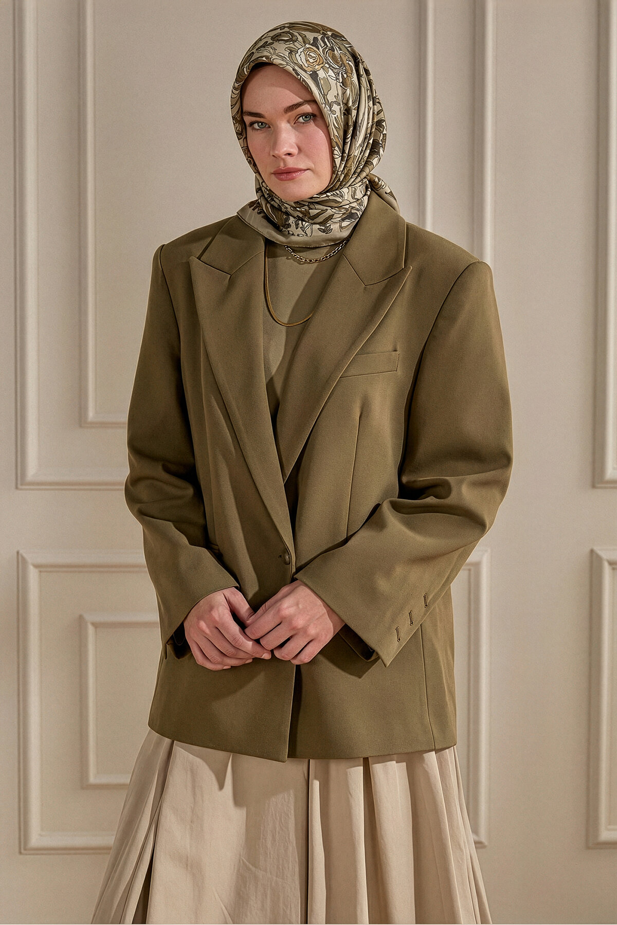 Bejin doğal sadeliği, Vintage Flora deseninin nostaljik çizgileriyle Kraş eşarbın üzerinde ferah ve zarif bir görünüm sunar. Nötr tonların huzurunu stilinize taşıyın.