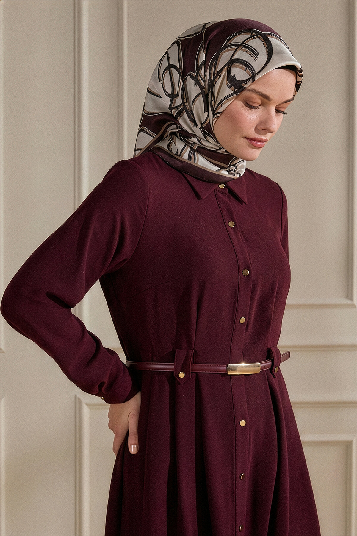 Bordo'nun derin ve asil tonu, Çember Dansı deseninin dinamik çizgileriyle Kristal Eşarbın üzerinde zengin bir görünüm yaratır. Bu eşarp, özel günlerinizde dahi rahatlıkla kullanabileceğiniz şık bir seçimdir.