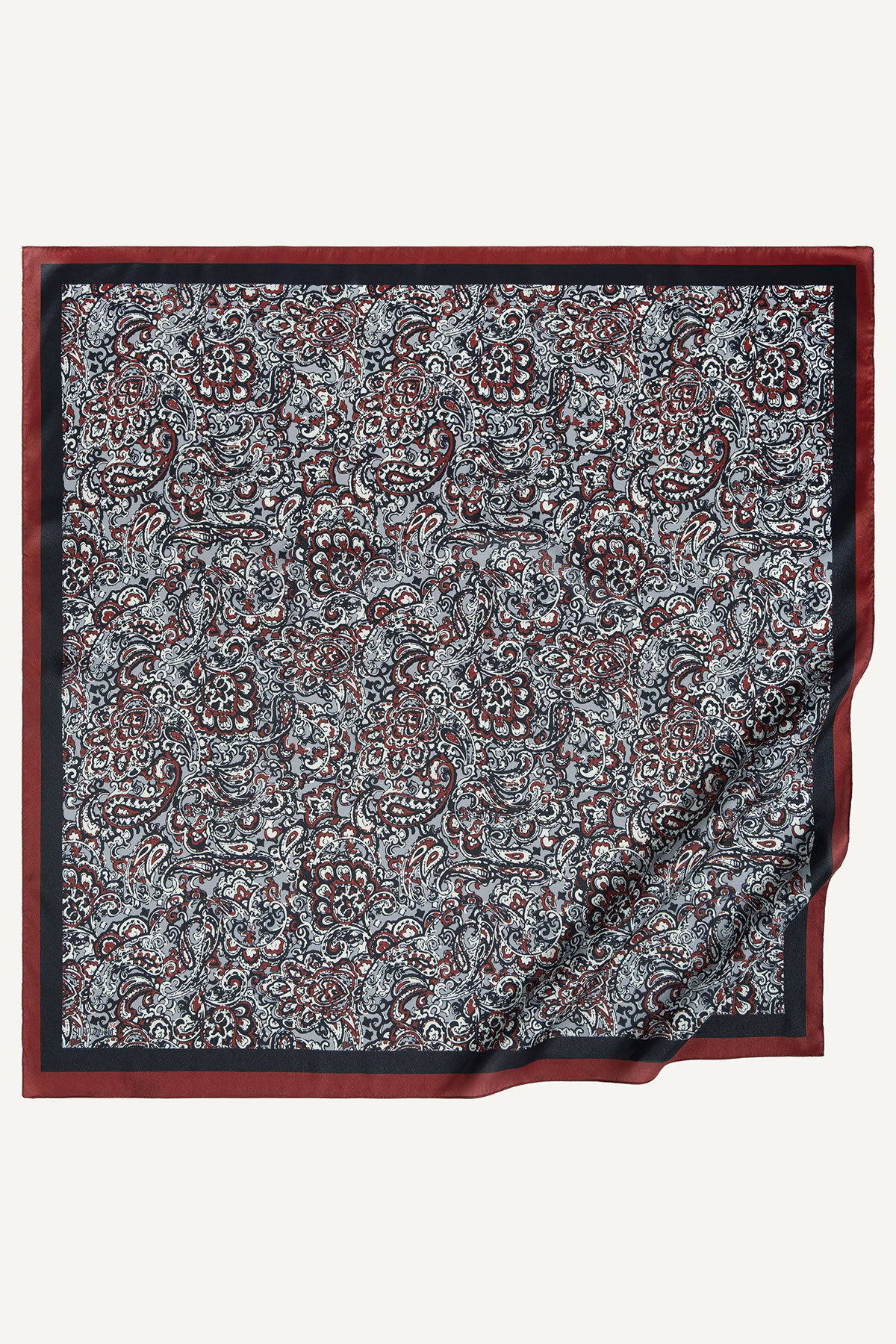 Bordo'nun derin ve asil tonu, Etnik desenin otantik çizgileriyle Kristal Eşarbın üzerinde zengin bir görünüm sergiler. Bu eşarp, klasik şıklığı lüks bir dokunuşla birleştirir.