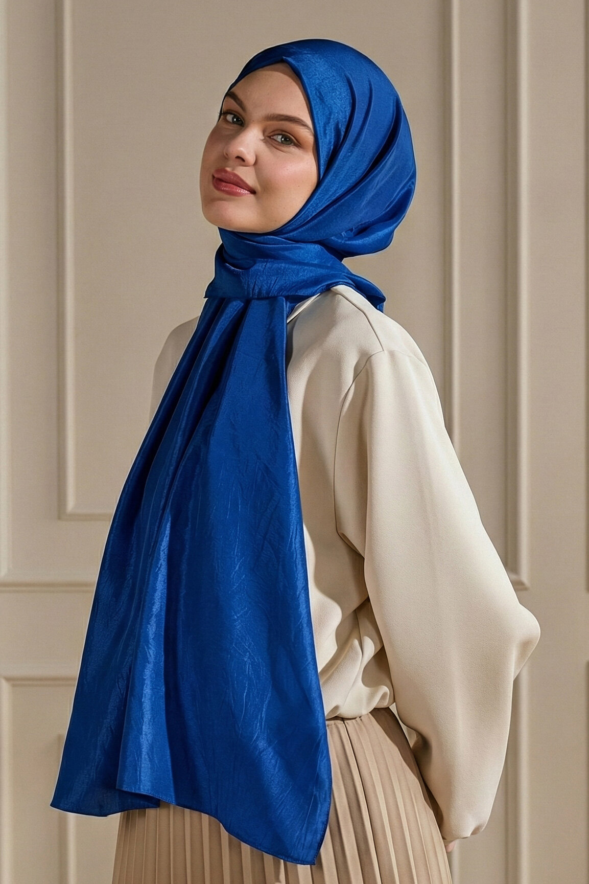 Gece Mavisinin derin ve gizemli tonu, Brissa Vual'ın hafif dokusuyla asil bir görünüm sergiler. Işıltılı kumaşı sayesinde hem gece hem de gündüz şıklığınızı tamamlar.