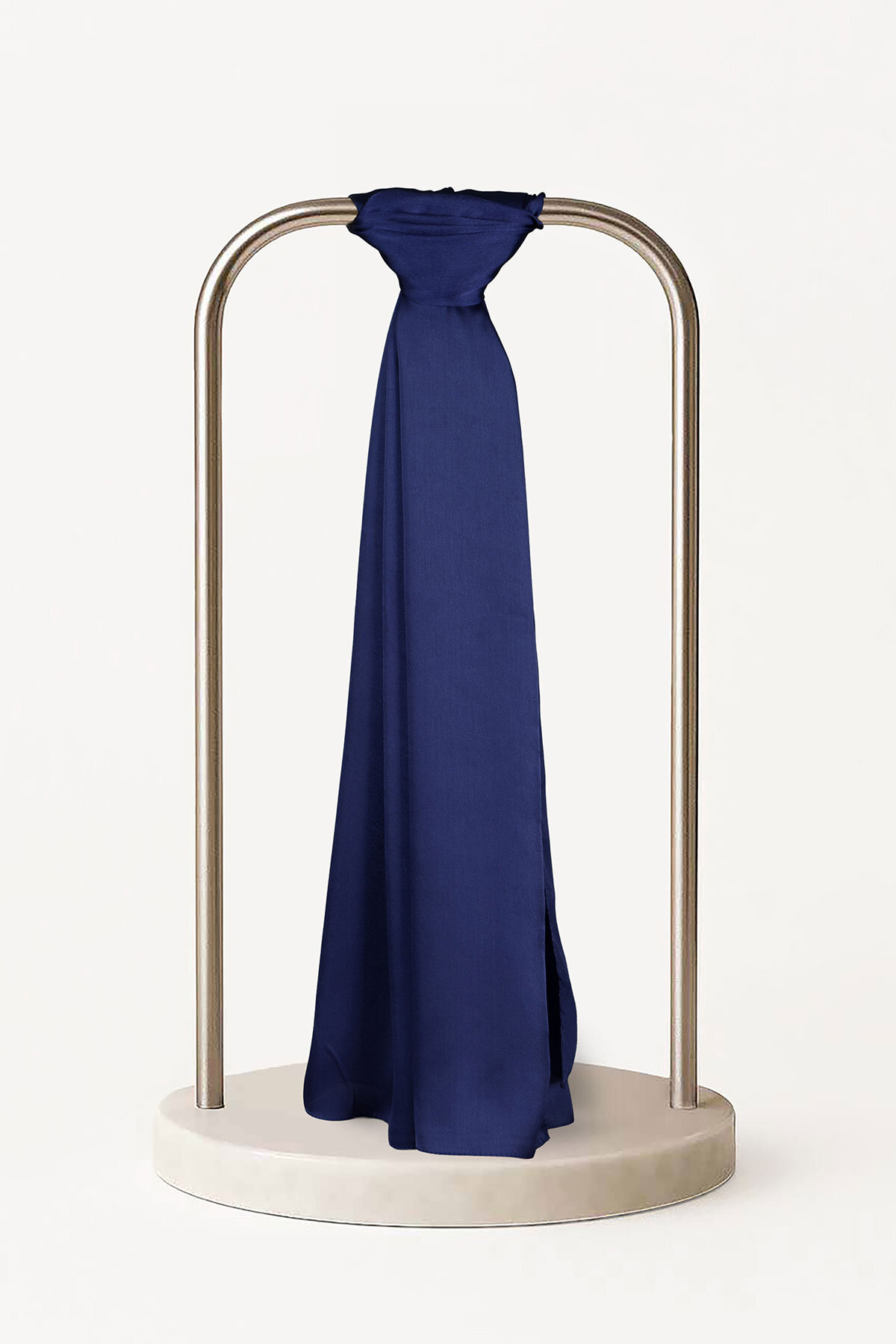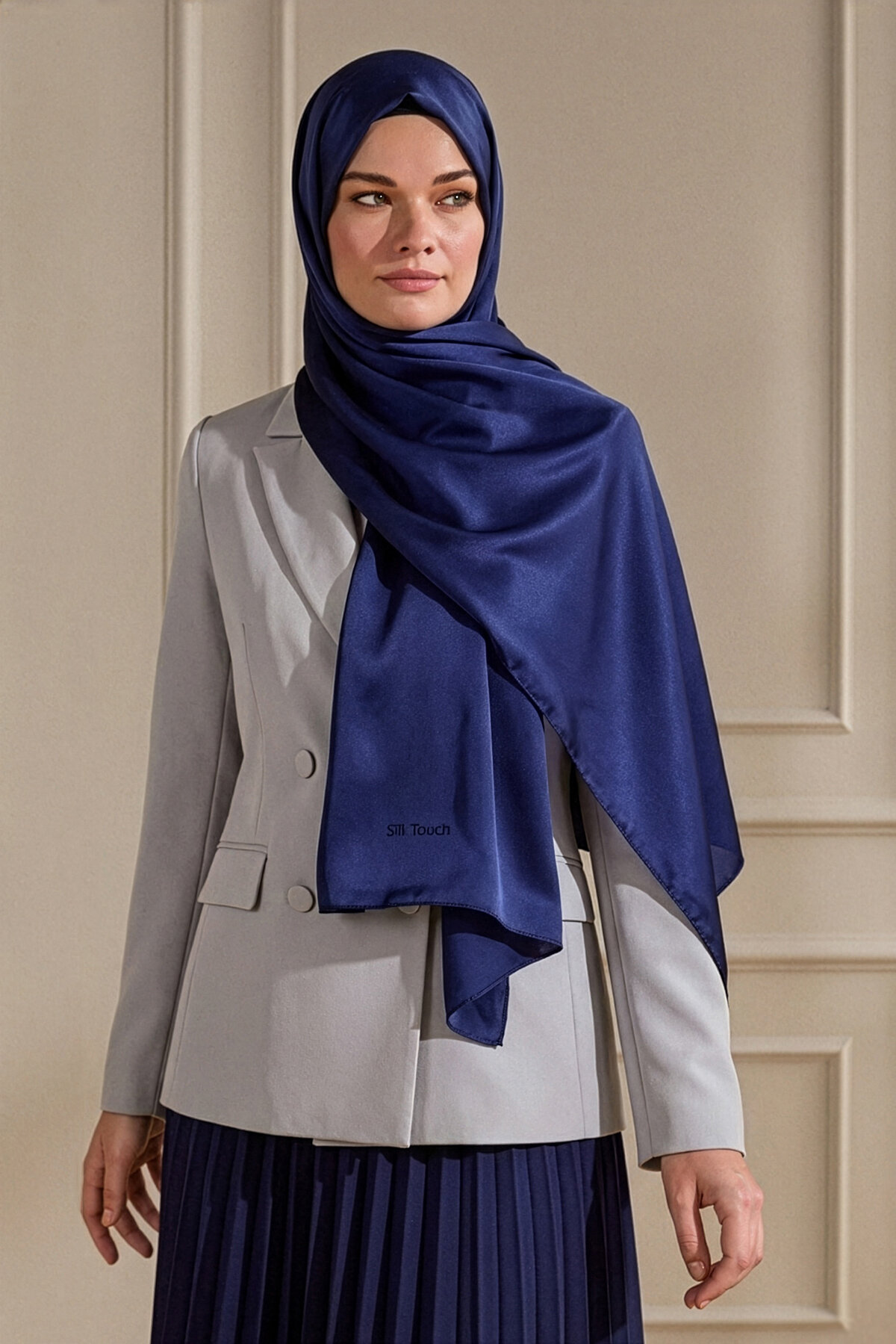 Gece Mavisinin gizemli ve derin tonu, İnci Şal'ın lüks dokusuyla asil bir görünüm sergiler. Işıltılı kumaşı sayesinde hem gece hem de gündüz şıklığınızı tamamlar.
