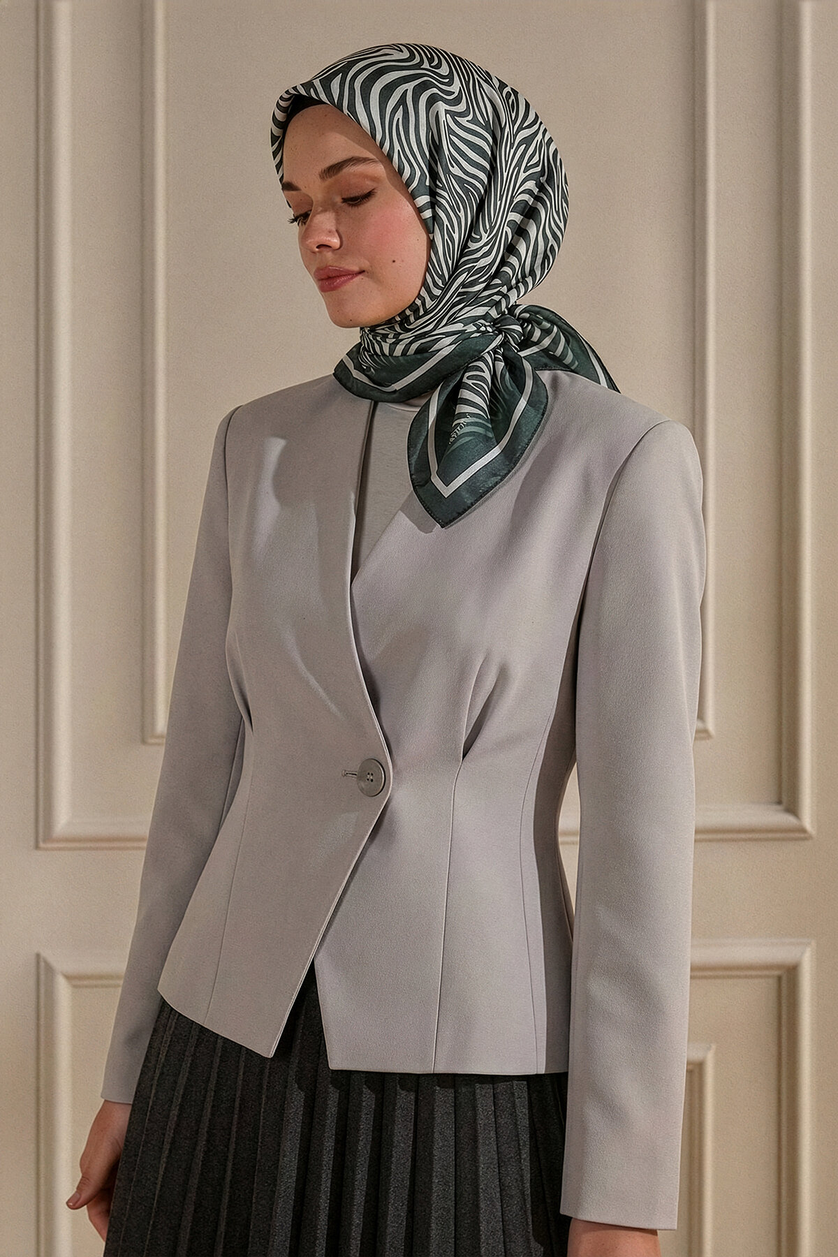 Grinin modern tonu, Zebra deseninin dinamik çizgileriyle Kristal Eşarbın üzerinde sofistike bir şıklık sunar. Kristal eşarbın parlaklığıyla minimalist zarafeti iddialı bir desenle yaşayın.