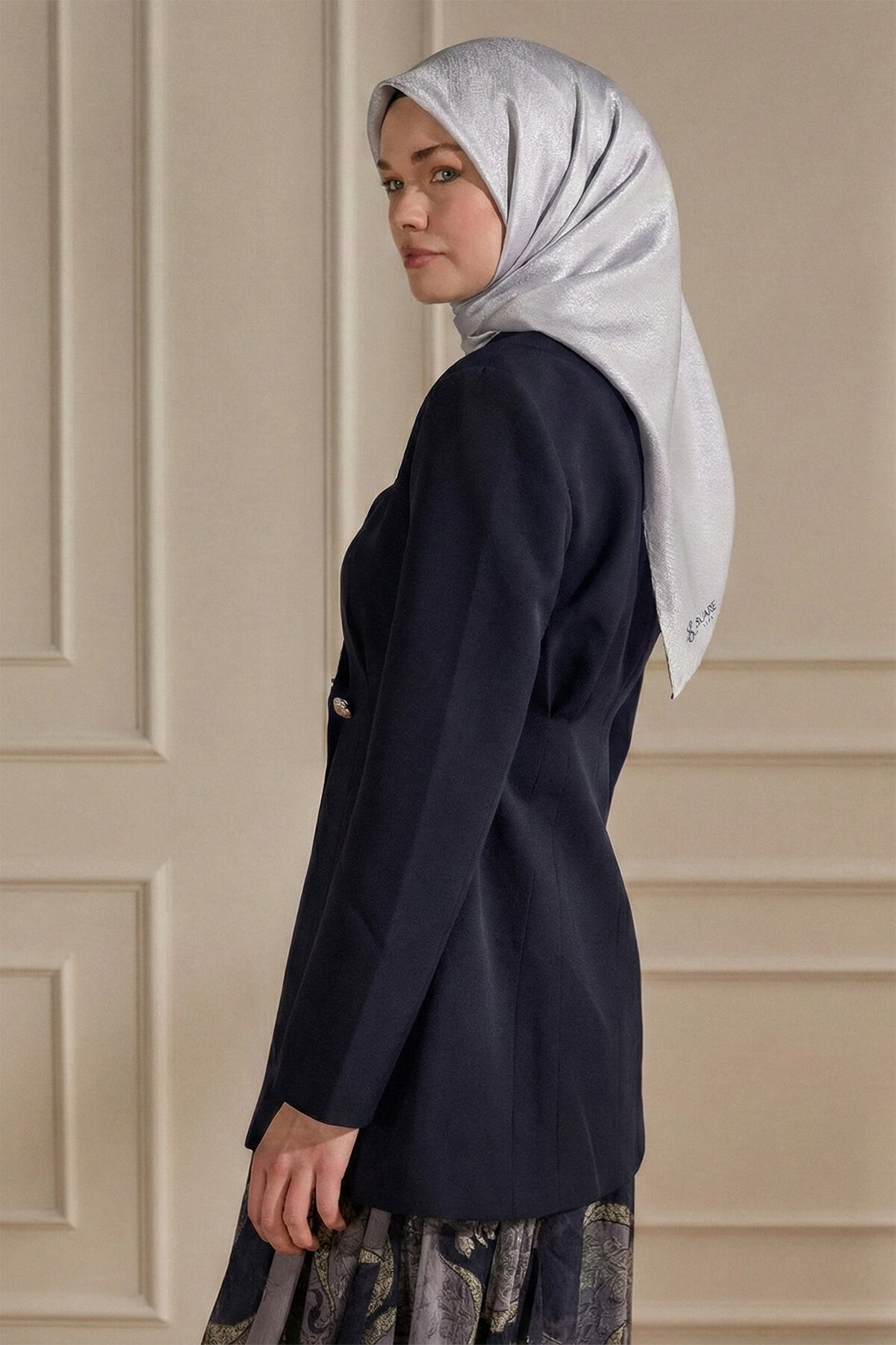 Gümüşün parlak ve dikkat çekici tonu, Kehribar eşarbın yüksek kaliteli dokusuyla birleşerek ışıltılı bir şıklık sunar. Aksesuar kullanmadan bile kombininize lüks ve modern bir hava katın.
