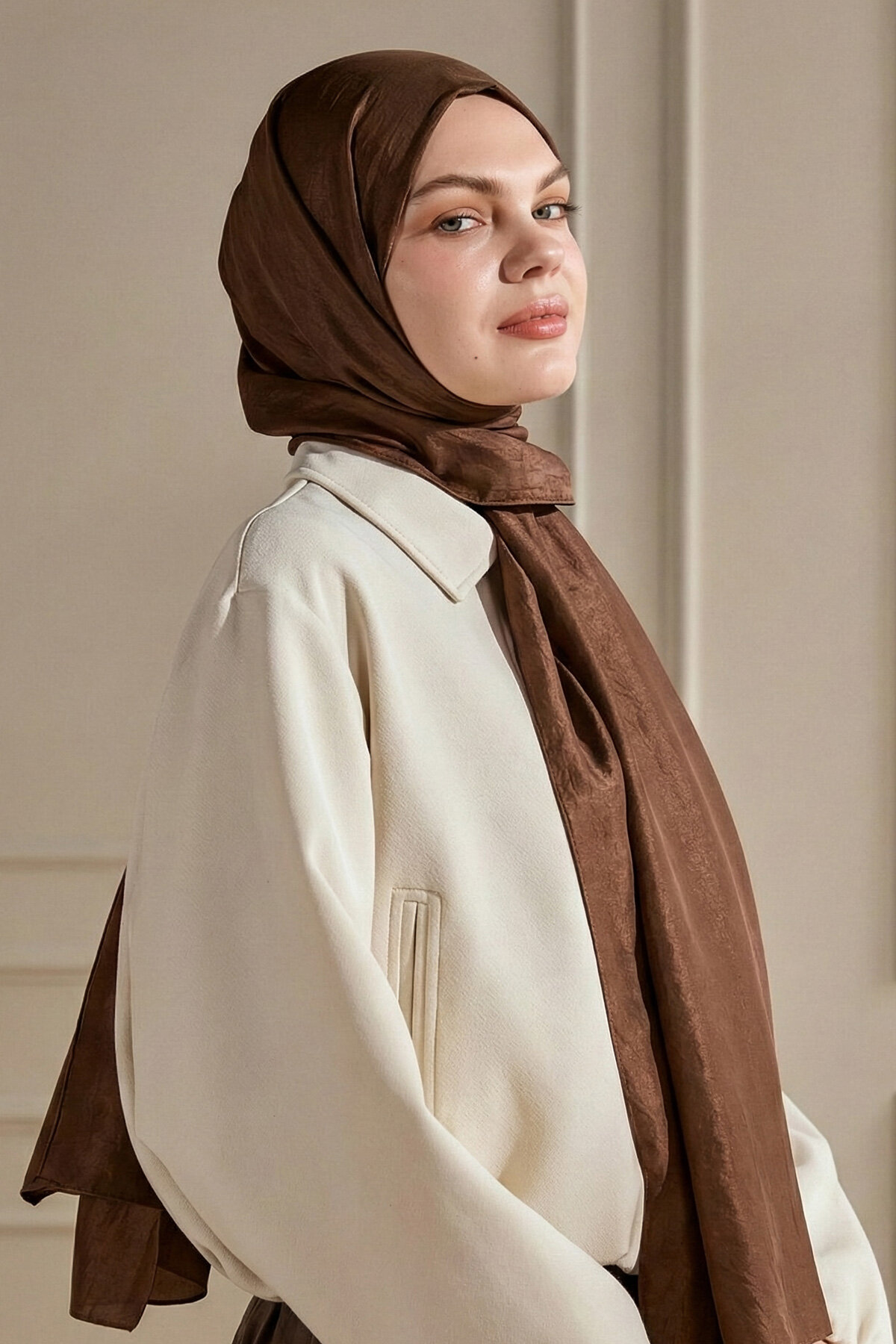 Kahve'nin doğal ve zamansız tonu, Brissa Vual şalın hafif ve yumuşak dokusuyla bütünleşir. Gündelik ve klasik şıklık için ideal bir tercihtir.