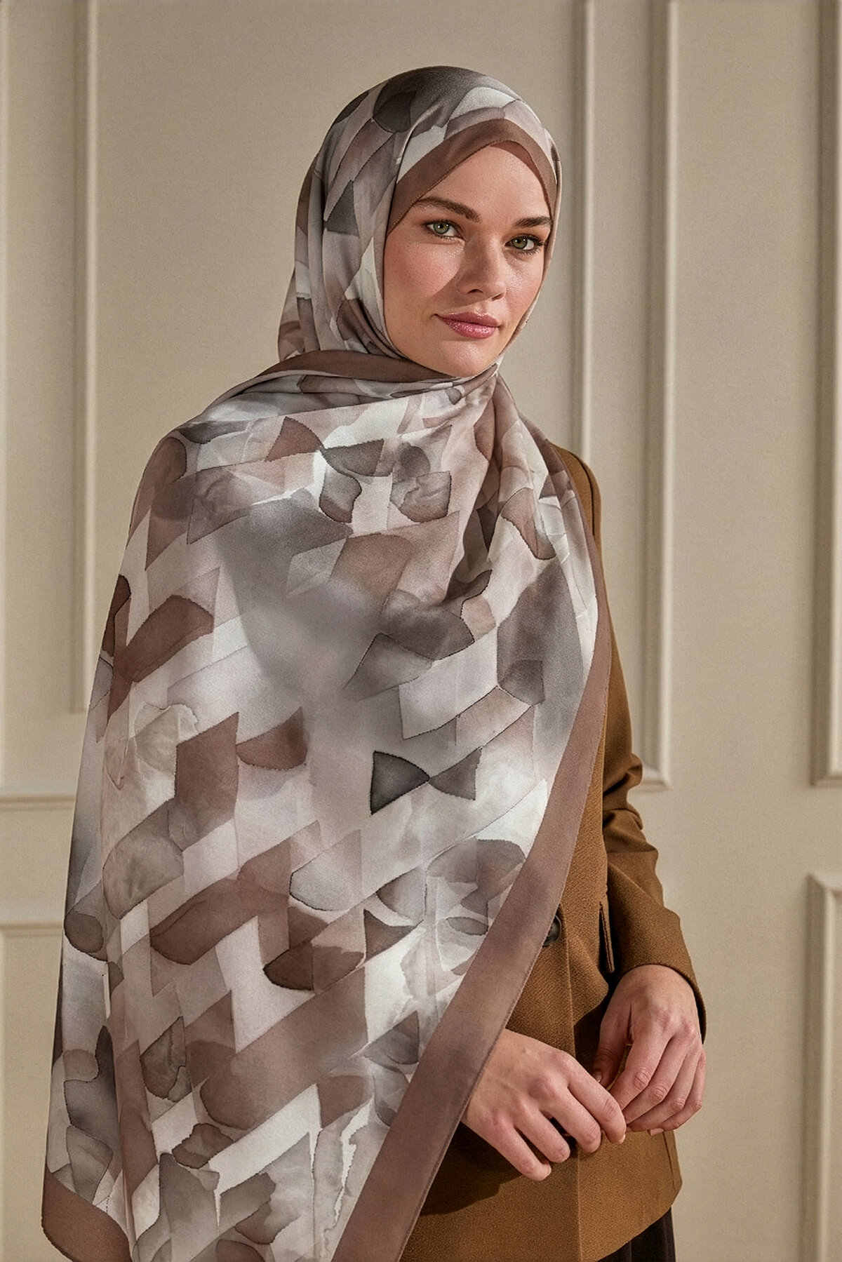 Kahve'nin sıcak ve doğal tonu, Kristal Işıltı deseninin narin ışıltısıyla Fransız İpeği'nin üzerinde lüks bir parıltı yaratır. İpeğin pürüzsüz dokusu ve zarif ışıltısıyla kombininize derinlik katın.
