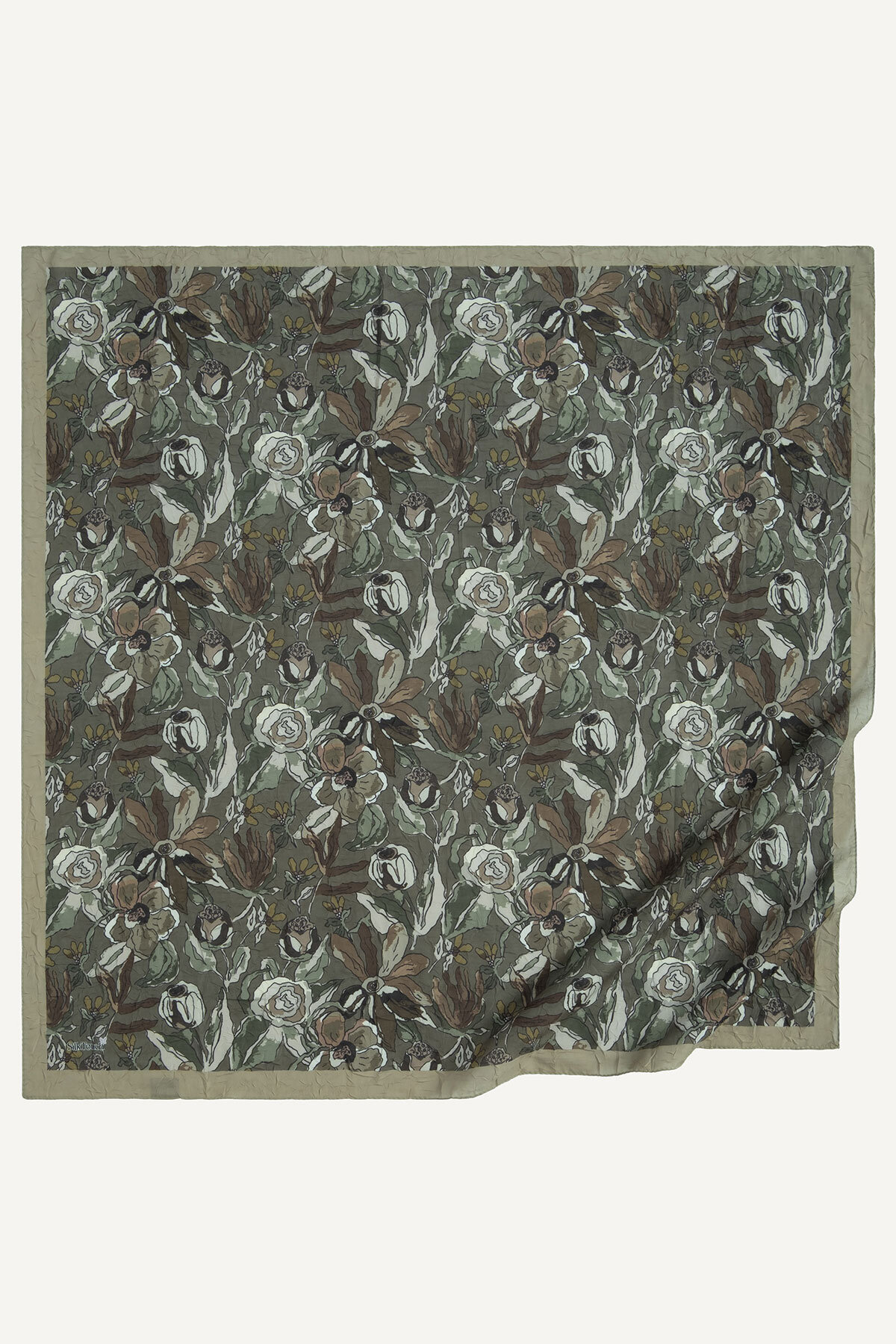Kahve'nin doğal ve zamansız tonu, Vintage Flora deseninin romantik çizgileriyle Kraş eşarbın üzerinde asil bir görünüm sergiler. Bu eşarp, toprak tonlarının sıcaklığını stilinize taşır.