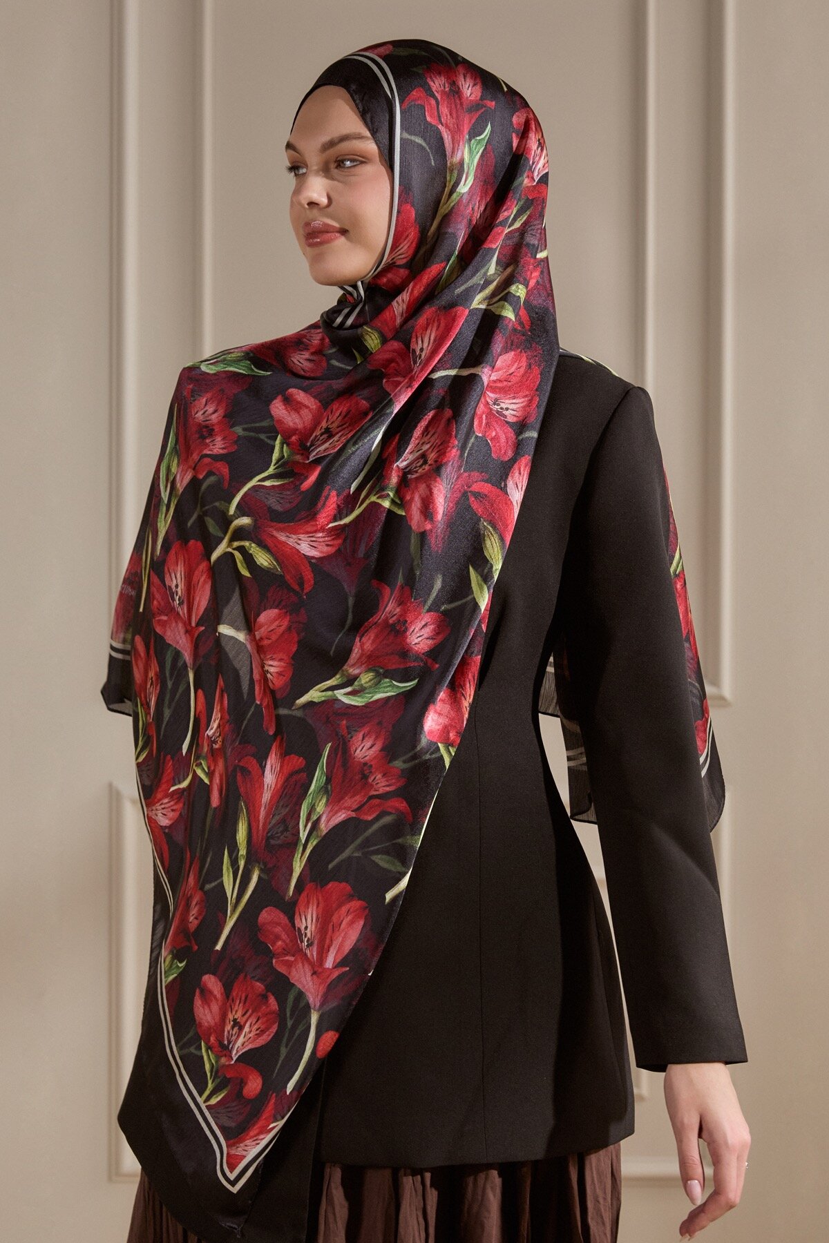 Kırmızının cesur enerjisi, Lale deseninin zarifliğiyle İdol Vual şalın üzerinde dinamik bir kontrast oluşturur. Bu şal, iddialı ve stil sahibi bir görünüm arayanlar için mükemmeldir.