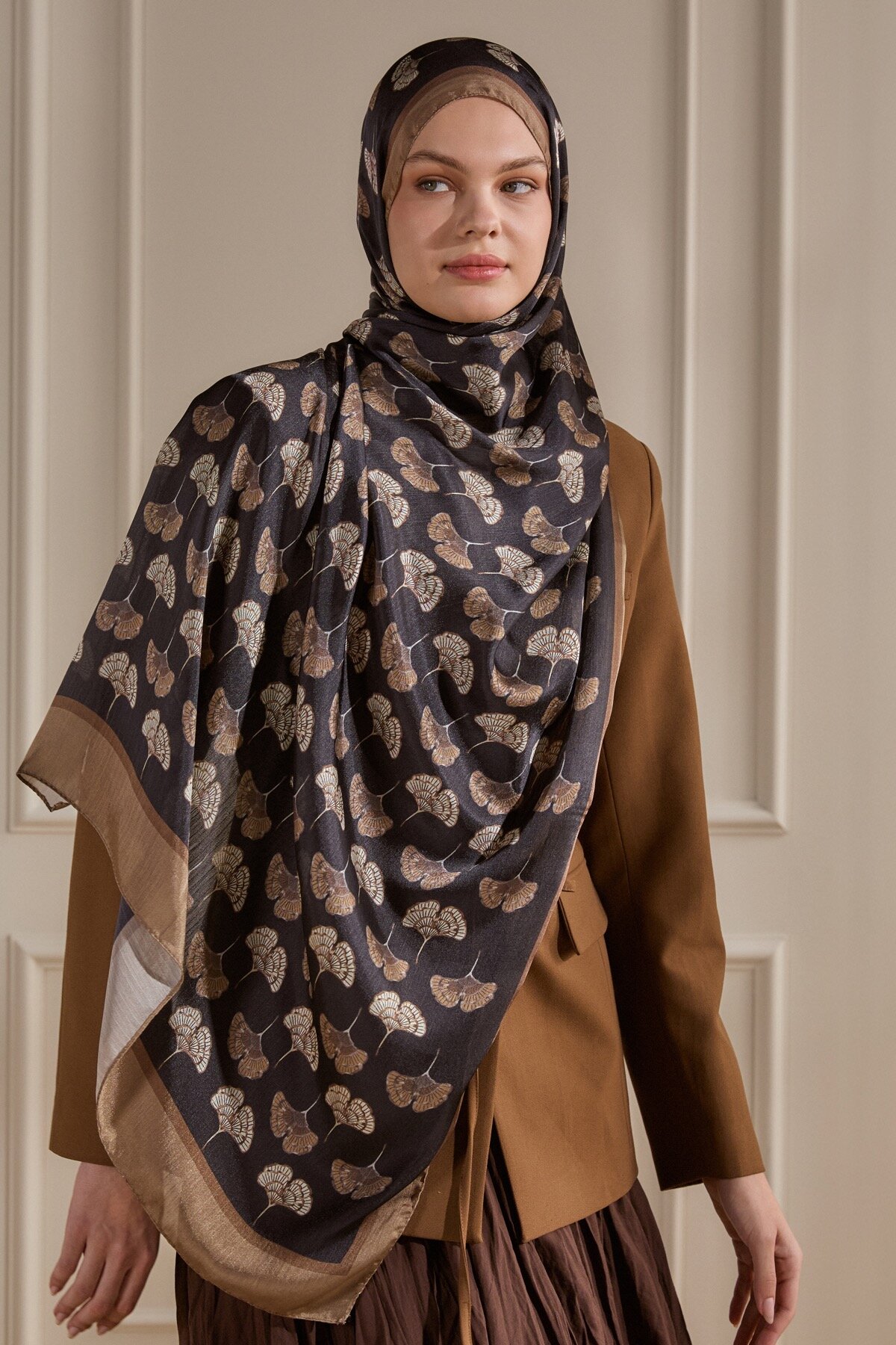 Kül Yonca deseninin zarif ve şans getiren motifleri, İdol Vual şalın hafif dokusuyla her an yanınızda. İpeksi tuşesi ve narin deseniyle günlük şıklığınıza pozitif bir dokunuş katın.