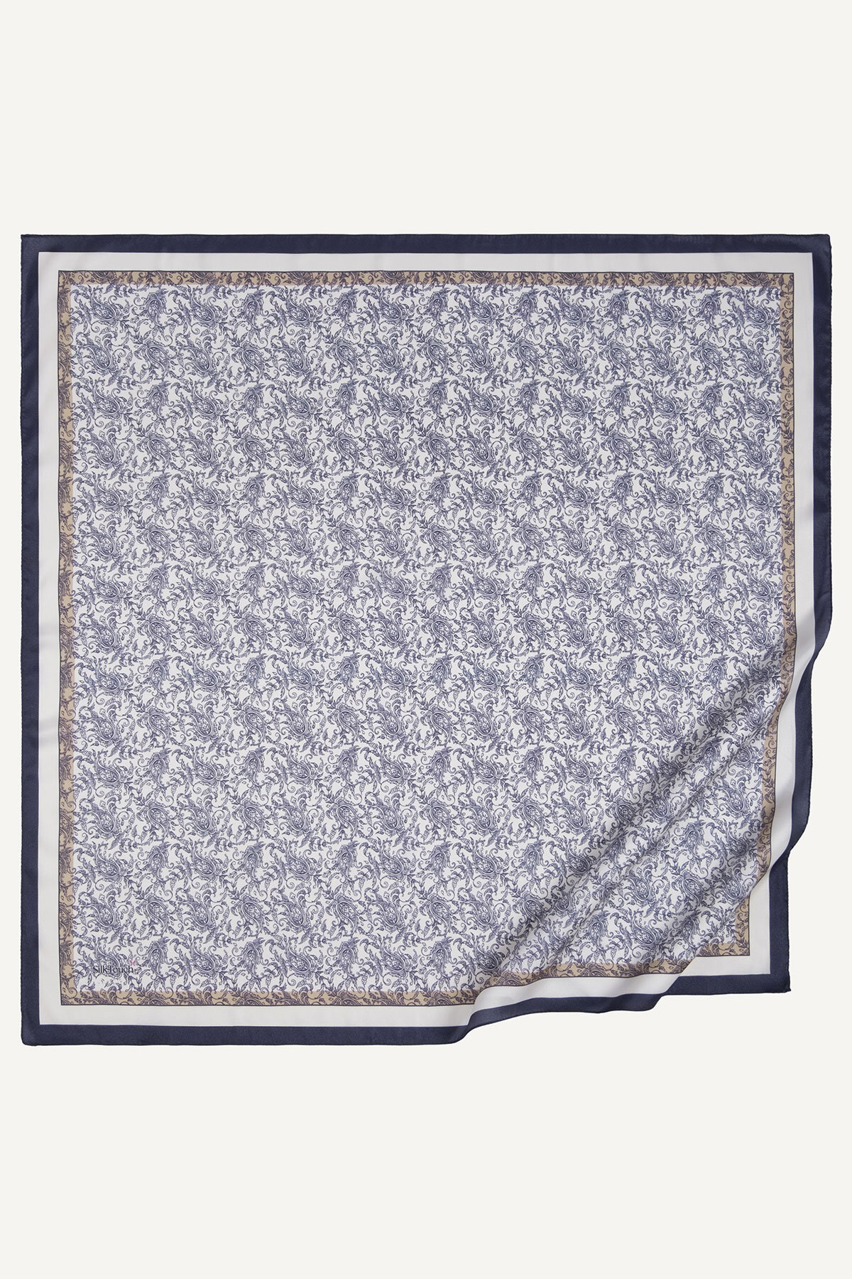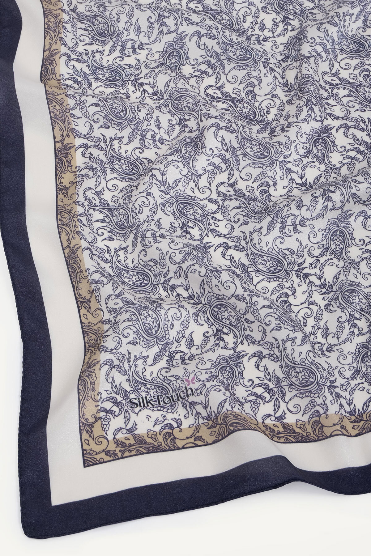 Lacivertin klasik asaleti, Asalet Motifi'nin zarif çizgileriyle Kristal Eşarbın üzerinde lüks bir görünüm sergiler. Bu eşarp, profesyonel ve şık bir stilin tamamlayıcısıdır.