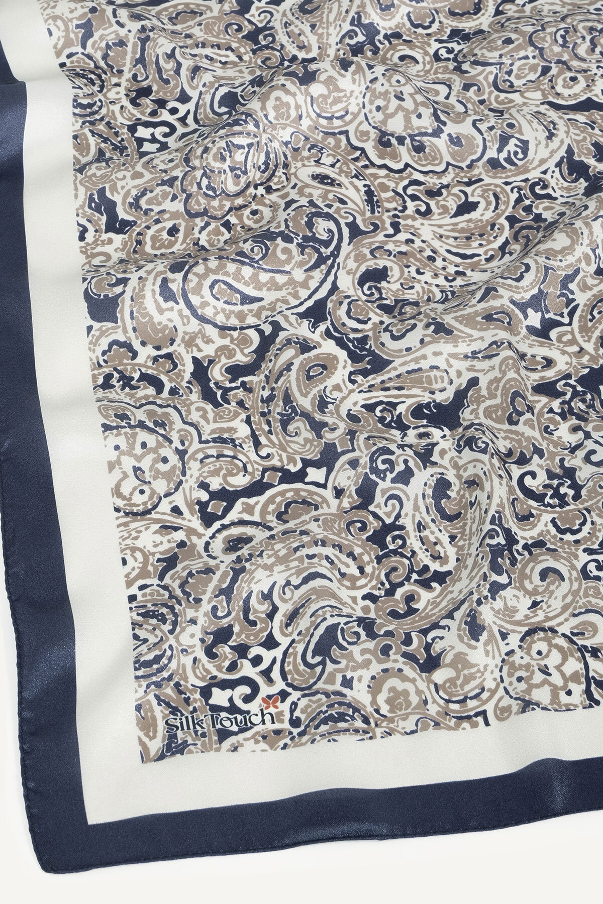 Lacivert ve Beyazın ferah kontrastı, Etnik desenin otantik motifleriyle Kristal Eşarbın üzerinde dinamik bir zarafet yaratır. Kristal eşarbın parlaklığıyla yaz aylarının şıklığını yaşayın.