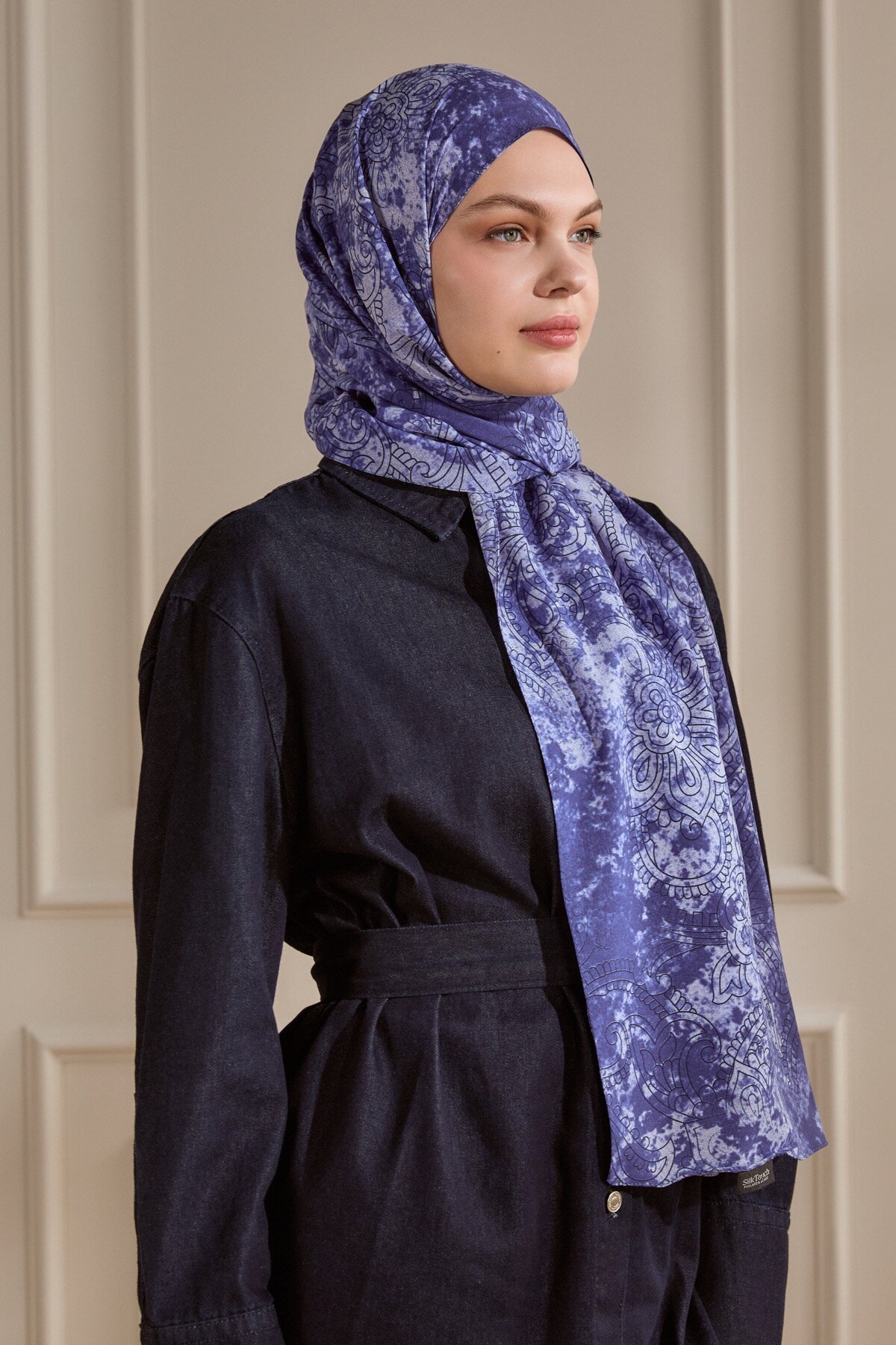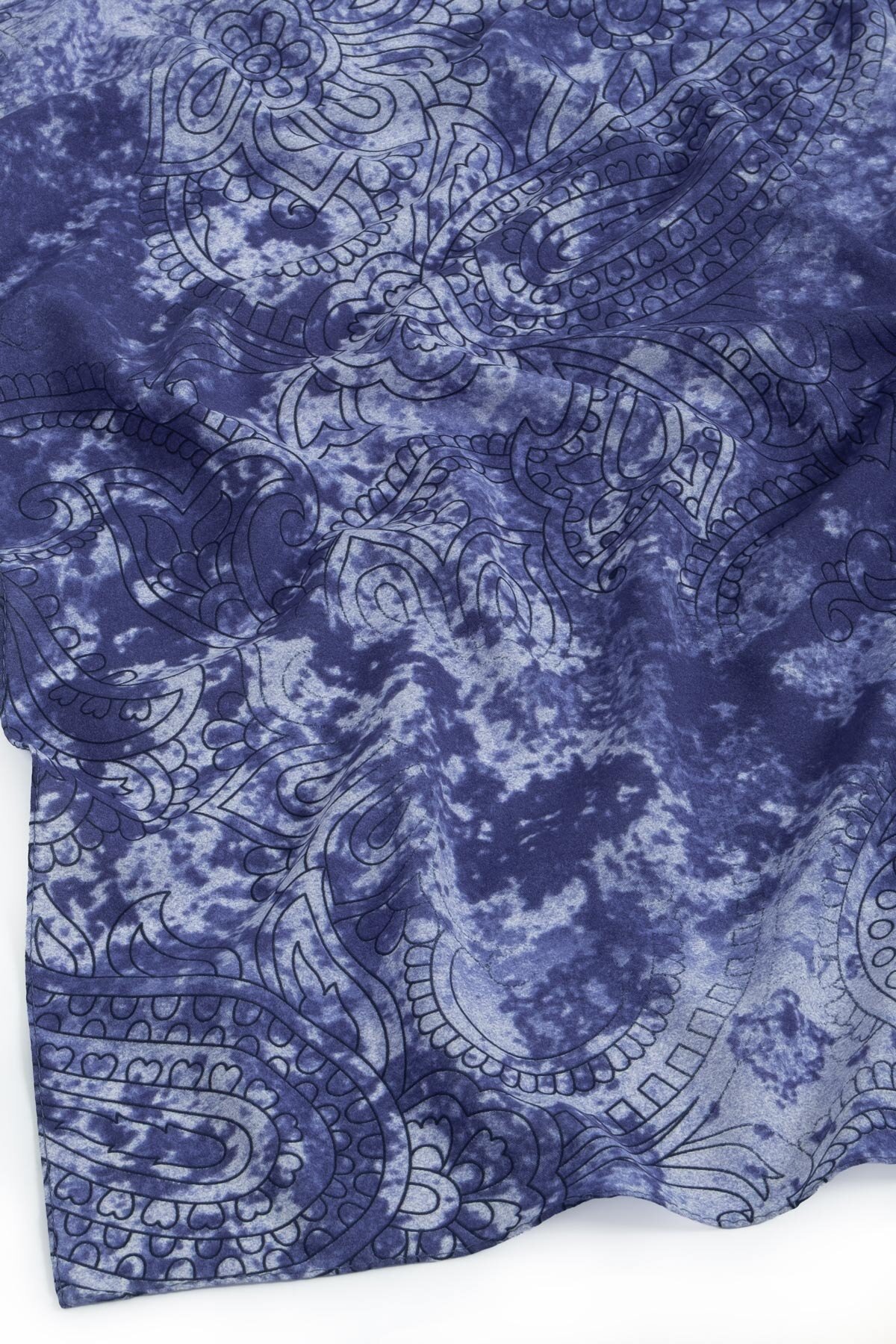 Denizin derinliğini anımsatan Lacivert üzerinde parlayan Etnik Dantel motifleri, şıklığınızı kültürel bir mirasla taçlandırıyor. Dökümlü ve hafif kumaşı sayesinde bağlama şekliniz ne olursa olsun kusursuz duruş sergiler.