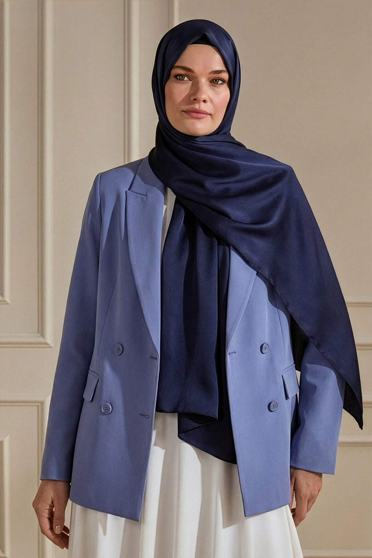 Lacivertin klasik asaleti, İnci Şal'ın tok ve kaliteli yapısıyla birleşerek kusursuz bir şıklık vadediyor. Profesyonel ve günlük stilinize zarafet katan vazgeçilmez bir parçadır.
