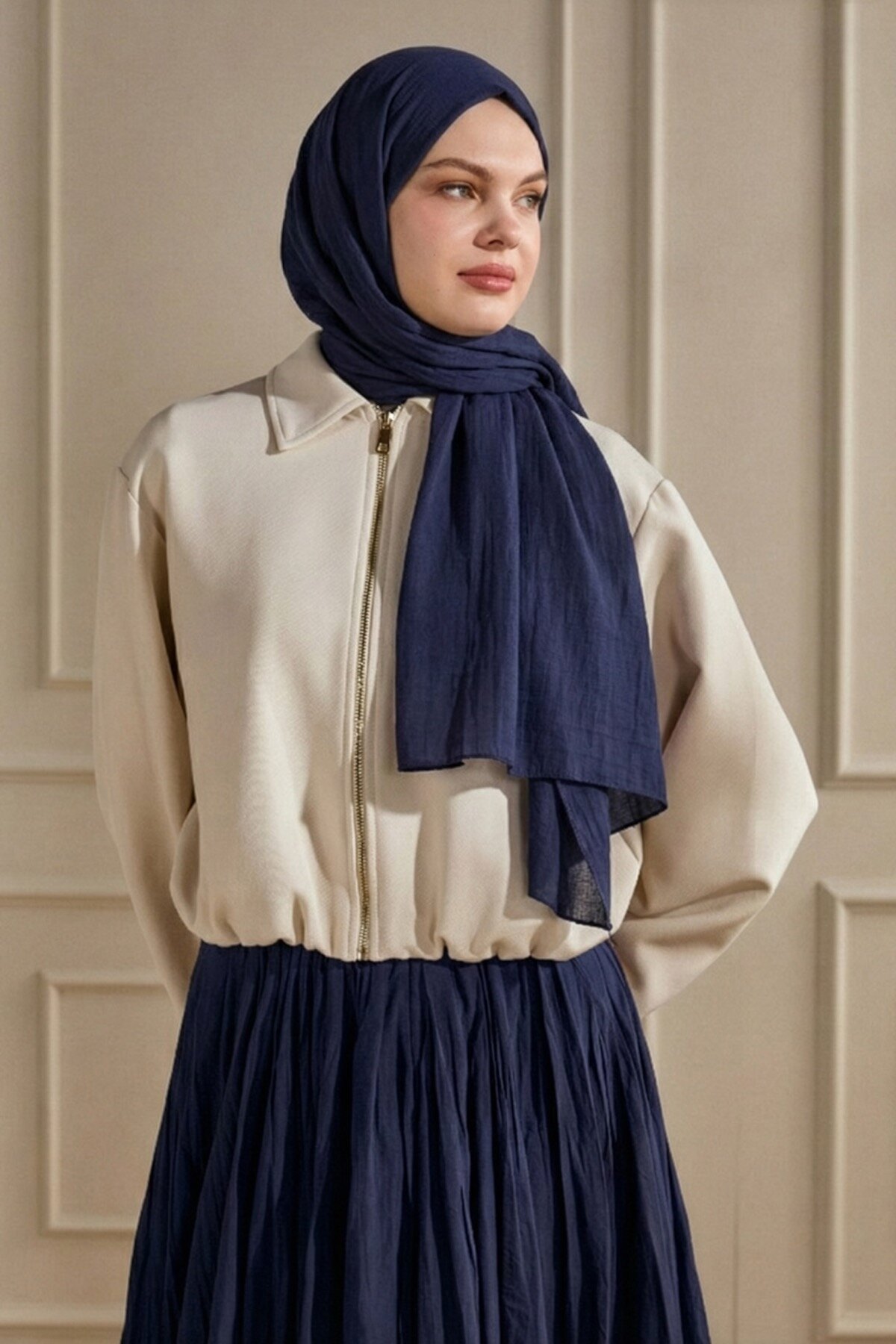 Lacivert'in derin ve gizemli tonu, Mercan şalın ipeksi yüzeyinde lüks bir etki yaratır. Bu şal, sofistike ve çarpıcı bir görünüm arayanlar için idealdir.