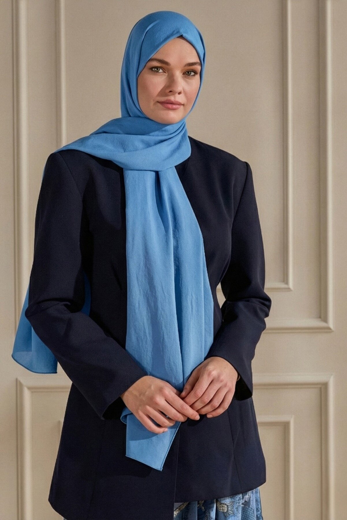 Mavi'nin ferah ve canlı tonu, Mercan şalın ipeksi dokunuşuyla enerjik bir şıklık sunar. Yaz aylarının ruhunu yansıtan canlı bir seçimdir.