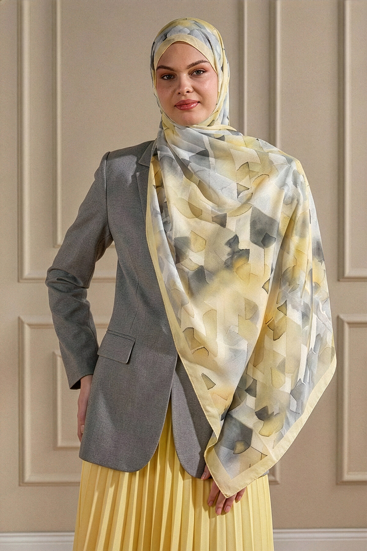 Sarının canlı enerjisi, Kristal Işıltı deseninin ışıltısıyla Fransız İpeği'nin üzerinde dinamik bir şıklık sunar. İpeğin pürüzsüzlüğü ve rengin canlılığıyla enerjinizi yansıtın.