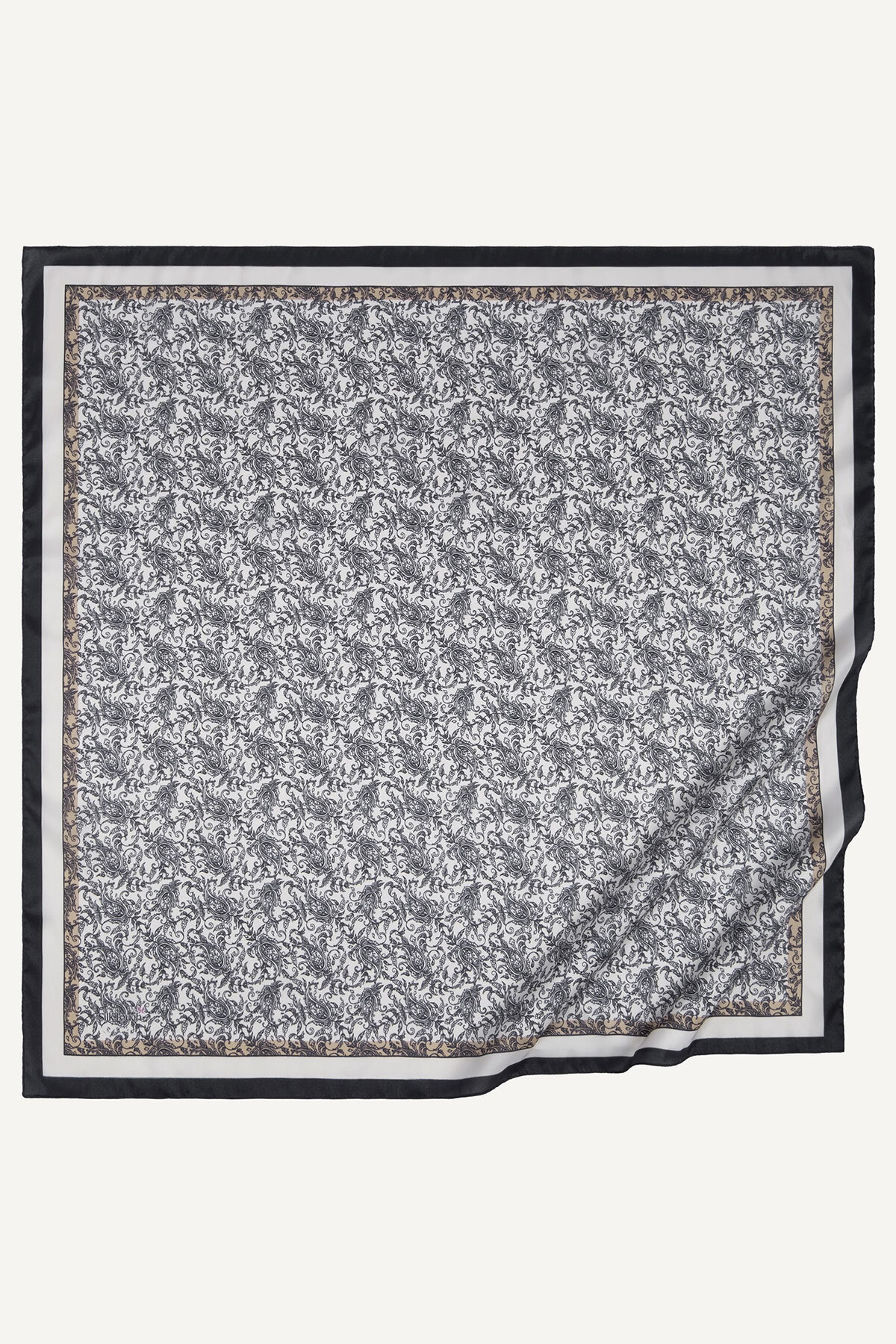 Siyahın asaleti üzerine işlenmiş Asalet Motifi, Kristal Eşarbın üzerinde lüks ve güçlü bir duruş sergiler. Kristal eşarbın ipeksi parlaklığıyla klasik şıklığınızı taçlandırın.