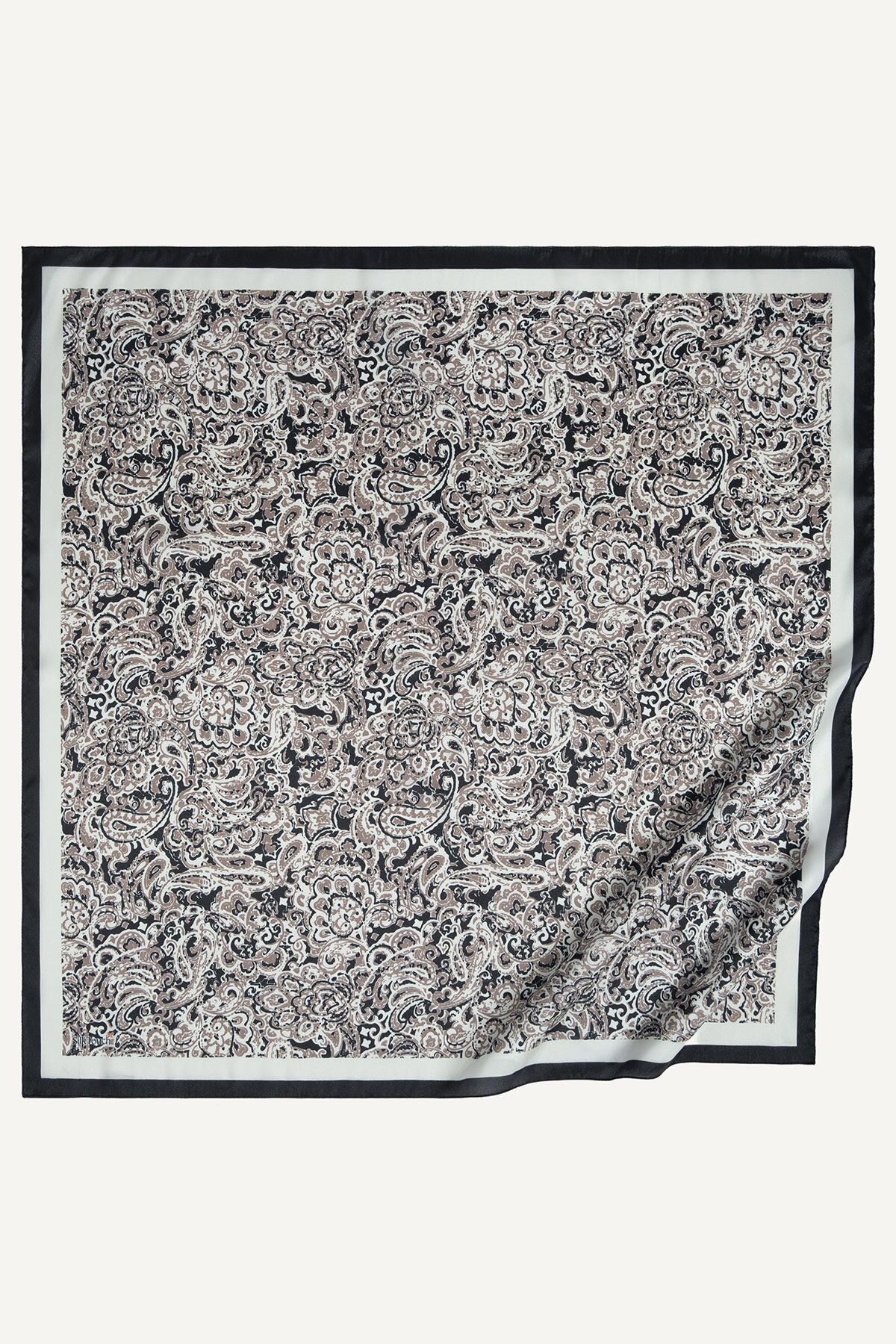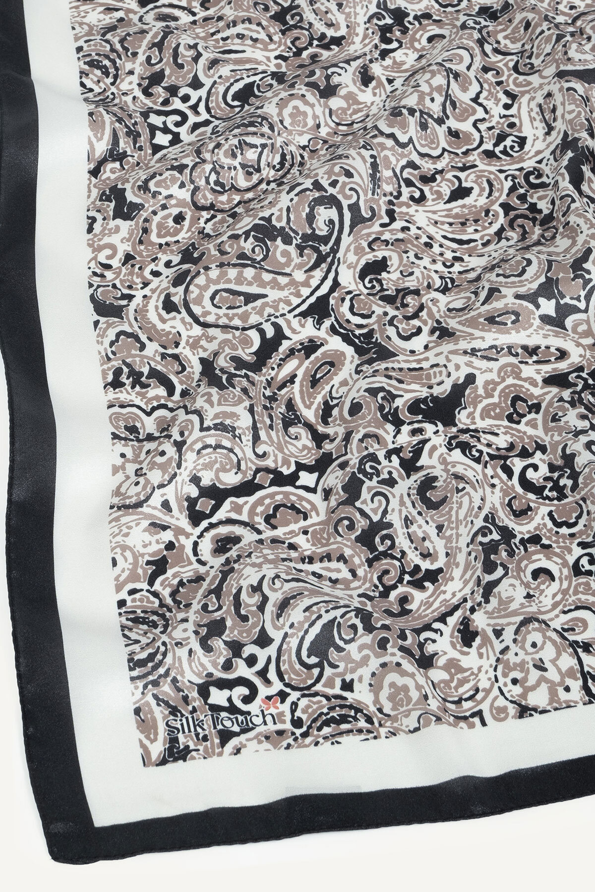 Siyah ve Beyazın klasik kontrastı, Etnik desenin otantik motifleriyle Kristal Eşarbın üzerinde çarpıcı bir etki bırakır. Bu eşarp, zamansız şıklığı dinamik bir ifadeyle sunar.