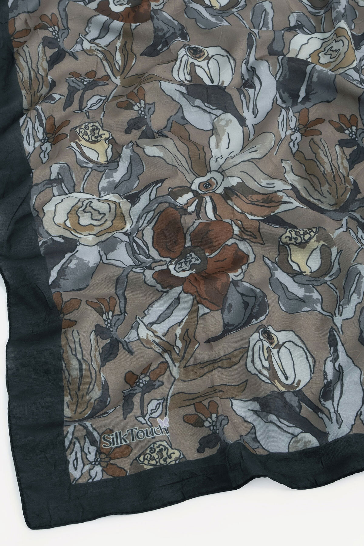 Siyah ve Kahve'nin derin uyumu, Vintage Flora deseninin nostaljik çizgileriyle Kraş eşarbın üzerinde sofistike bir görünüm yaratır. Kraş şalın rahat yapısıyla klasik tonların şıklığını yaşayın.