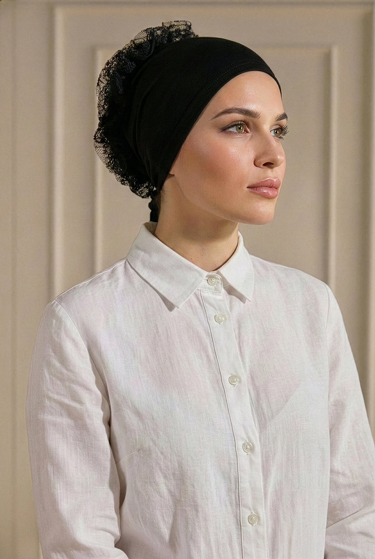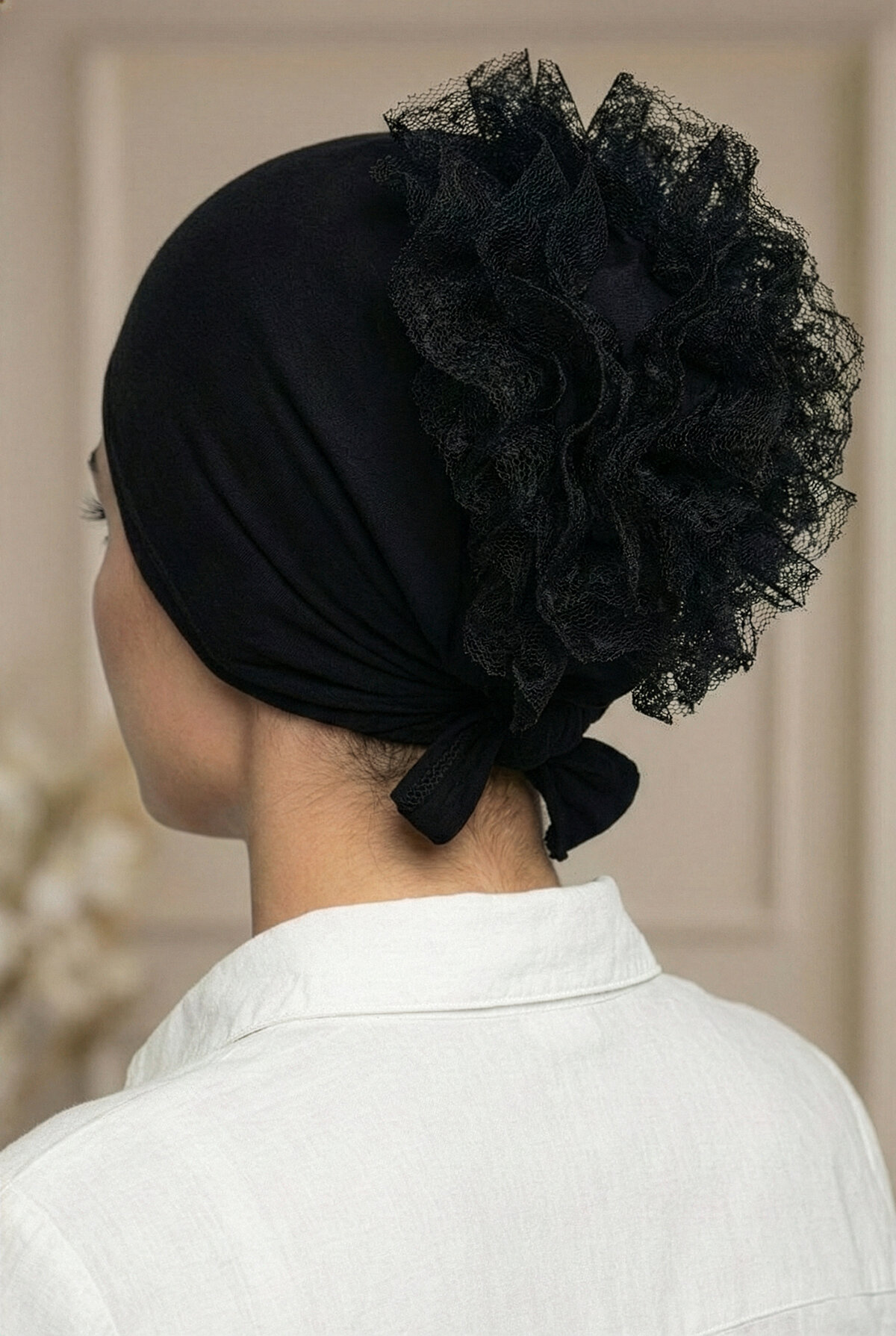 Tesettür giyimde zarafeti pratiklikle buluşturan Siyah Dikişli Fırfırlı Bone, günlük kombinlerinizden özel davetlerinize kadar her anınıza eşlik etmek için tasarlandı. Hazır türban formu sayesinde dakikalar içinde hazırlanmanıza yardımcı olurken, fırfır detaylarıyla stilinize hareketli ve modern bir hava katar.
