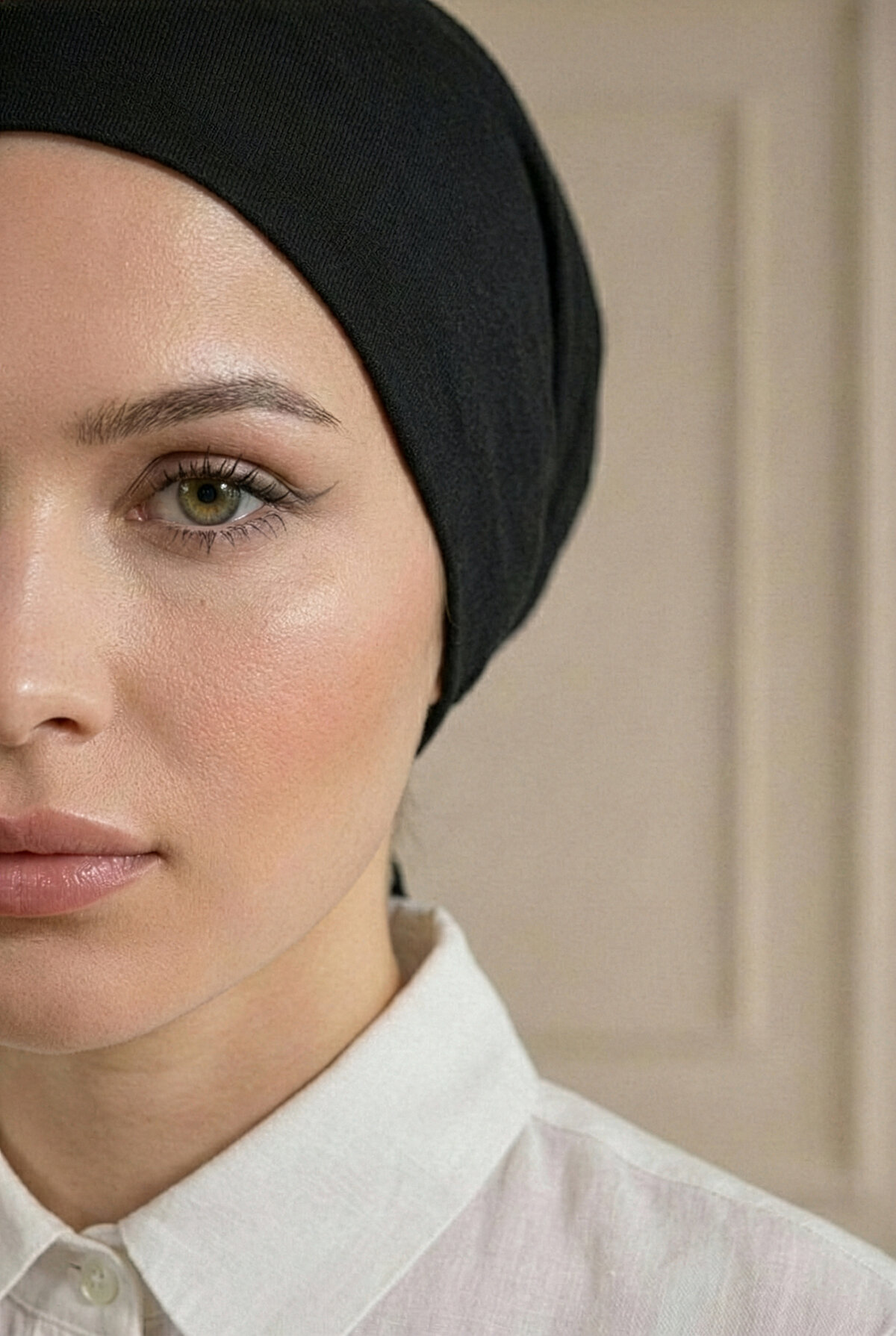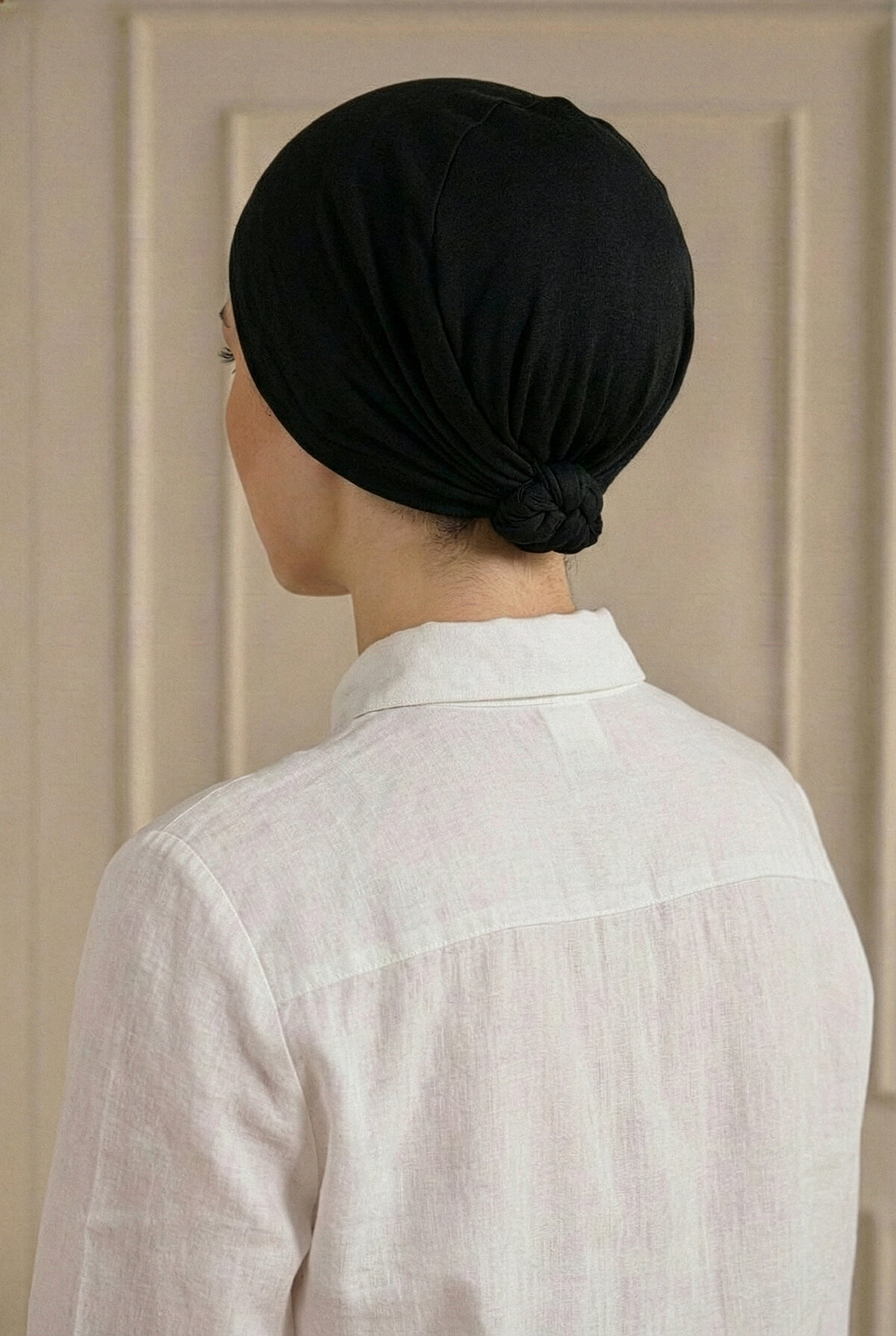 Günlük kullanımda ve özel günlerde pratiklik arayanlar için tasarlanan siyah tesettür topuz bone, saçlarınızı tam kavrar ve gün boyu bozulmasını önler. Nefes alan pamuklu kumaşı sayesinde terleme yapmaz ve saç sağlığınızı korur. İdeal hacim veren dolgusuyla eşarbınızın arkasında kusursuz bir görünüm oluşturur. Siyah hazır türban kolaylığıyla zamandan tasarruf edin, şıklığı zahmetsizce yakalayın.