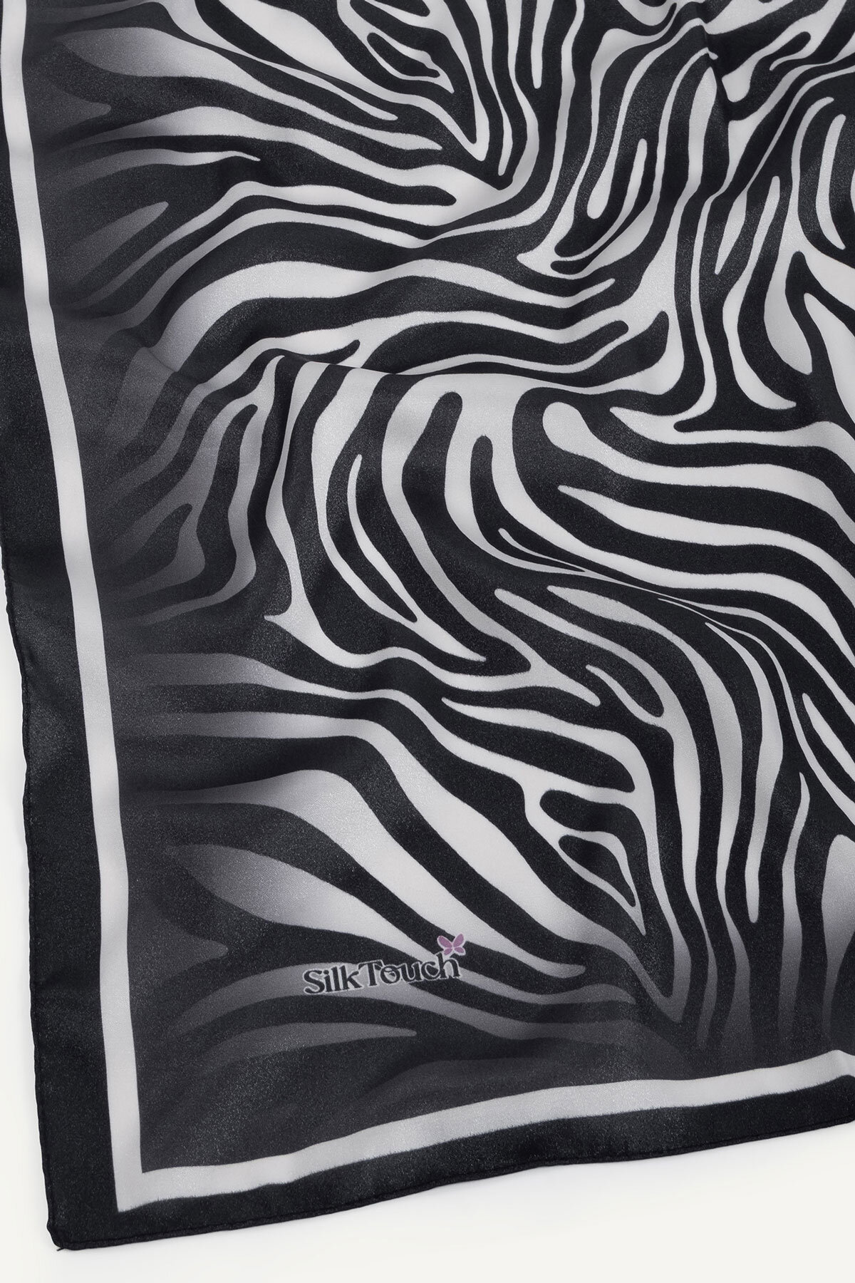 Siyahın asaleti üzerine işlenmiş Zebra deseninin cesur çizgileri, Kristal Eşarbın üzerinde iddialı bir kontrast oluşturur. Kristal eşarbın ipeksi parlaklığıyla vahşi ve modern şıklığı birleştirin.