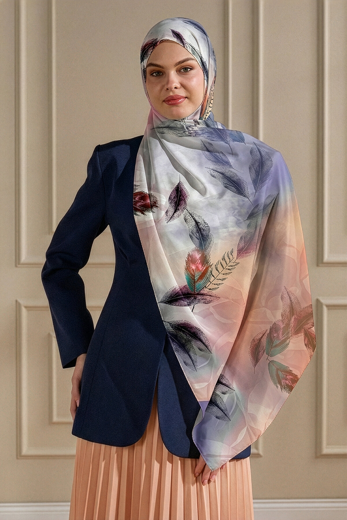 Somonun tatlı ve canlı tonu, Kehribar Tüyü deseninin narinliğiyle Fransız İpeği'nin üzerinde romantik bir etki bırakır. İpeğin yumuşak tuşesiyle bahar şıklığınızı tamamlayın.