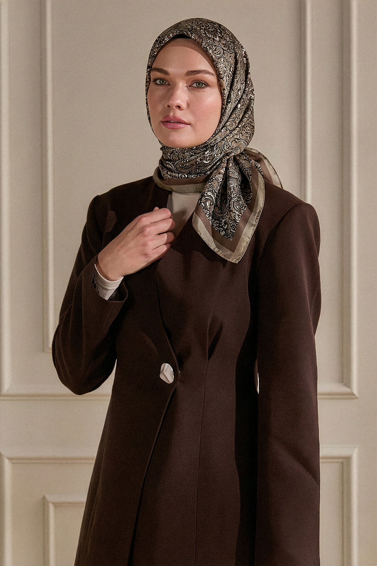 Vizonun nötr ve asil tonu, Etnik desenin otantik motifleriyle Kristal Eşarbın üzerinde zamansız bir zarafet sunar. Bu eşarp, her renk ve desenle uyum sağlar.