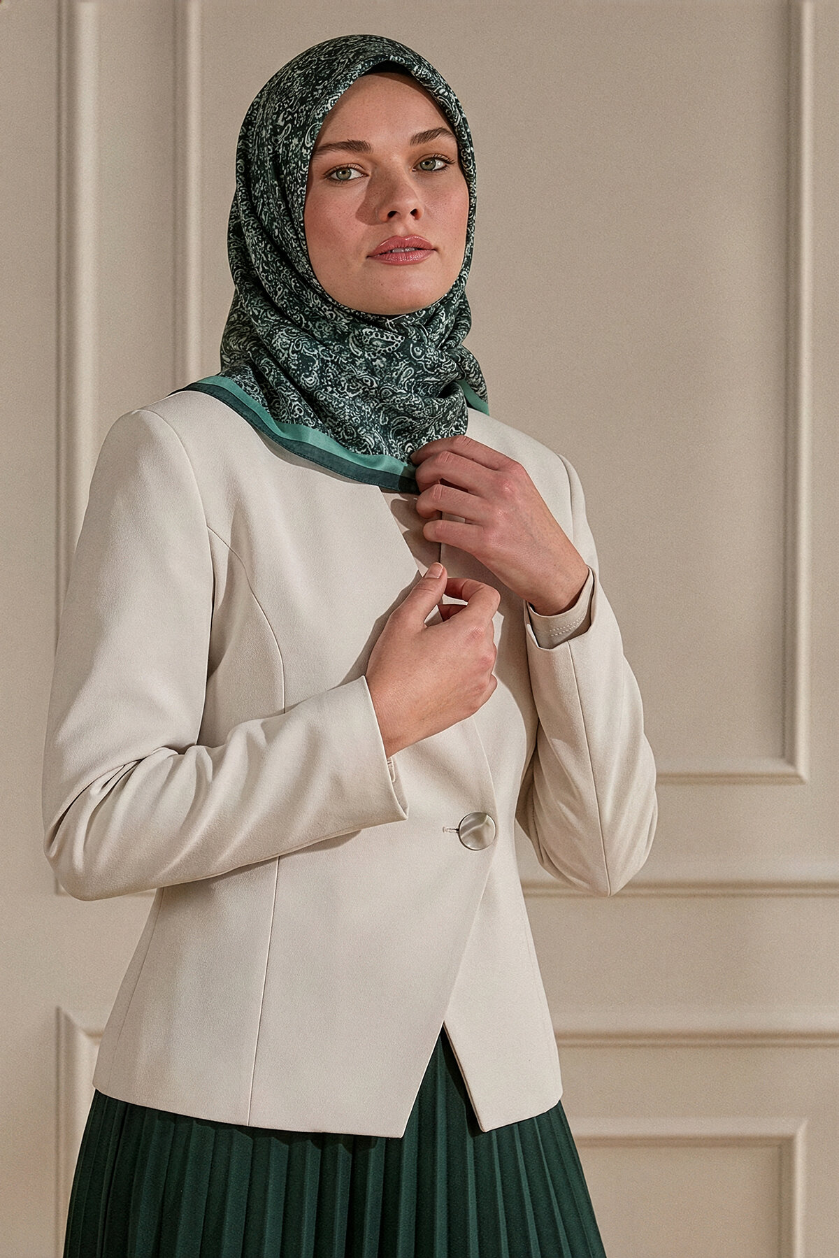 Zümrütün görkemli tonu, Etnik desenin otantik motifleriyle Kristal Eşarbın üzerinde ihtişamlı bir etki yaratır. Kristal eşarbın parlaklığıyla kombininize anında değer katın.